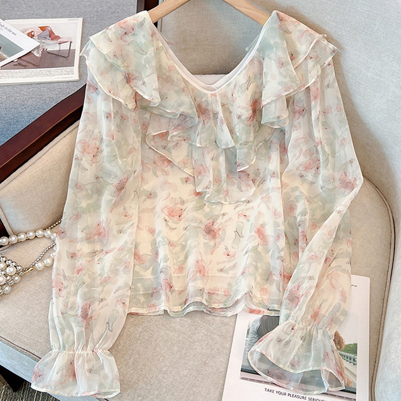 Sweet Slim Collar Chiffon Blouse