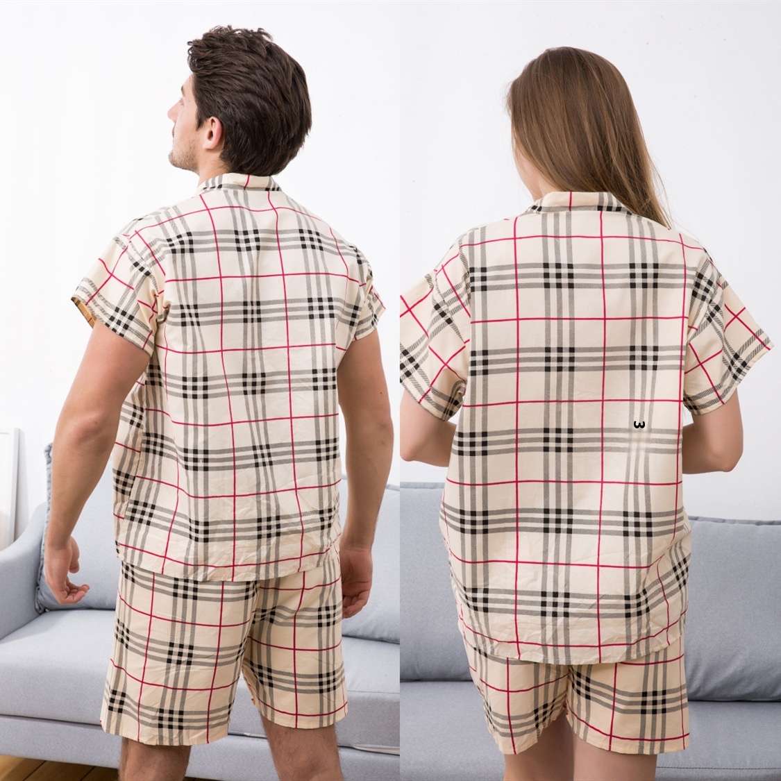 Fashion Casual Natural Couple Silk Lapel Pajamas Elegant Temperament Breathable Home Ice Silk Home Clothes Suit