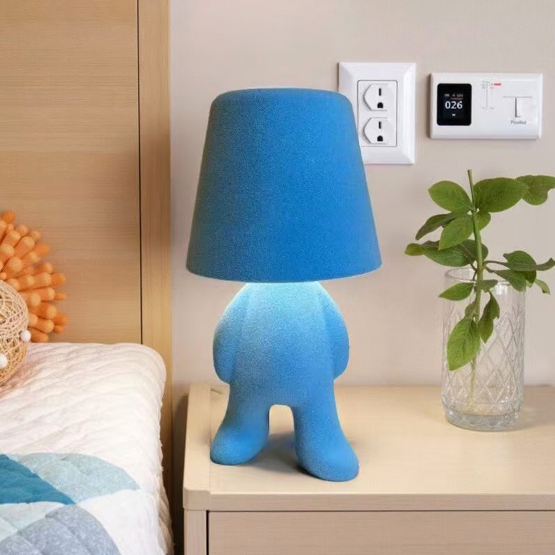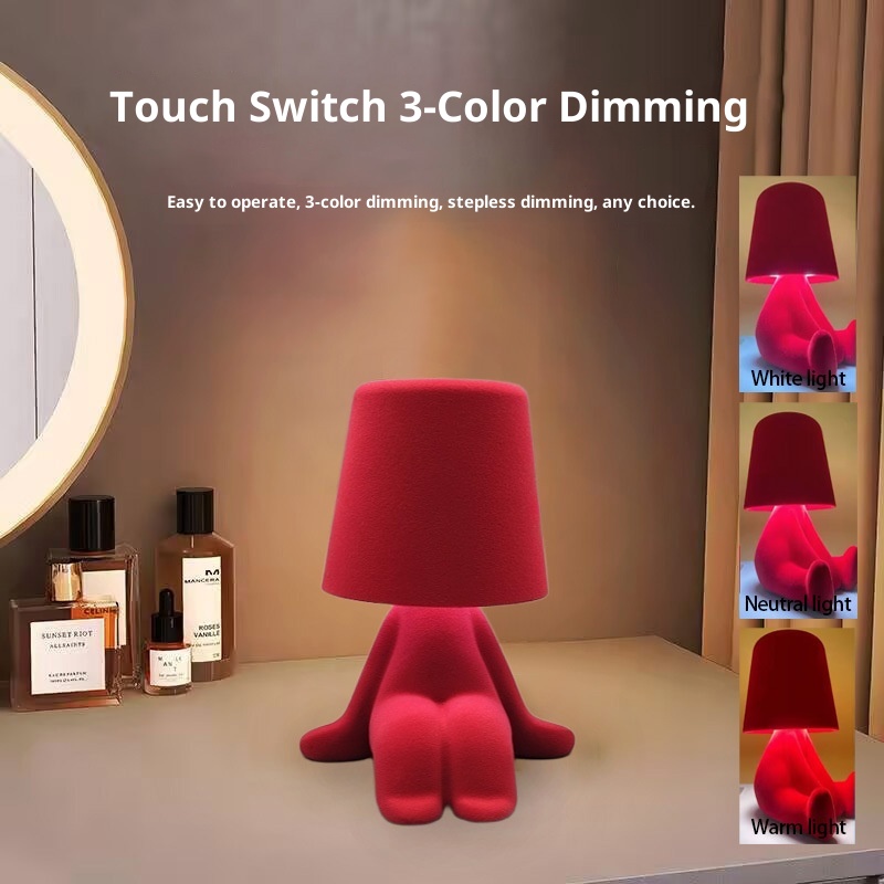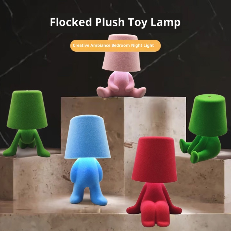 L Doll Flocking Table Lamp Bedroom Bedside Night Light USB Charging Touch Three-color Light Macaron Color