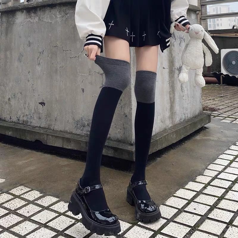 Socks Women's Jk Thigh Socks Color Matching Black And Gray Stitching Long Over-the-knee Half-leg Pressure Slimming Leg Socks