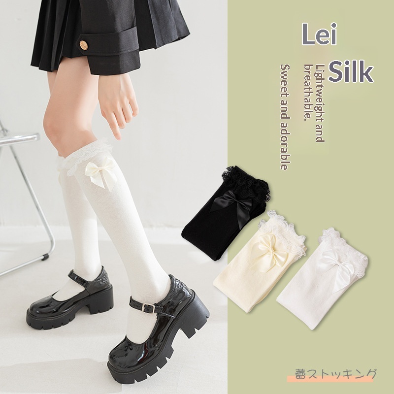 White Lace Lolita Lower Leg Socks Jk Socks Women's Long Tube Lace Japanese Style Mid-Leg Socks Not Supported