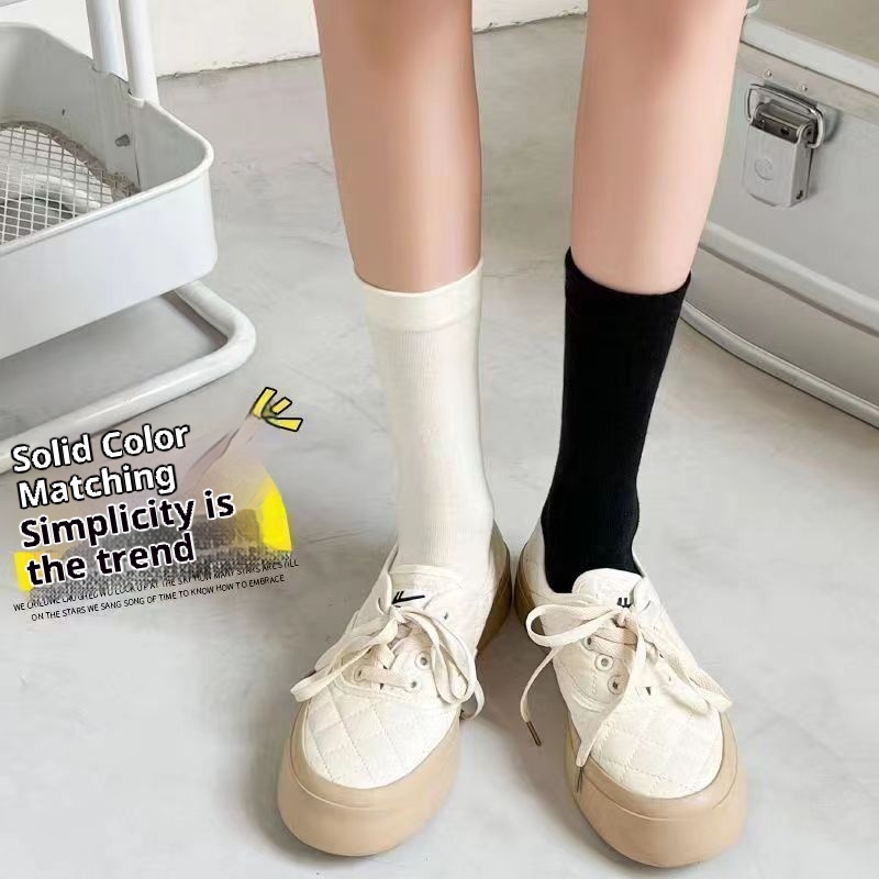 Cheap Loose Socks Moon Socks Women's Medium Solid Color Fashionable Breathable White Pile Socks Summer Women Zhuji Batch