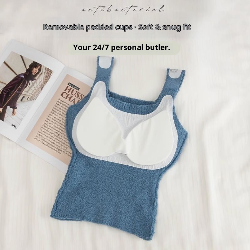 Autumn And Winter Thermal Vest Cashmere Plus Velvet With Chest Pad Bra Outer Wear Bottoming Top Women's Soft Underwear