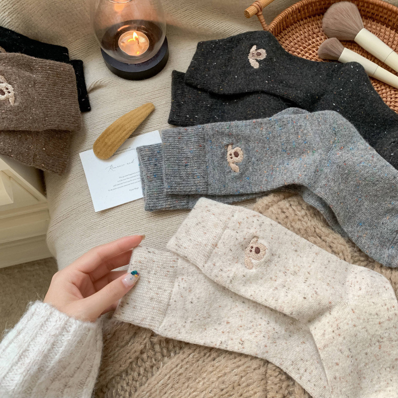 Autumn And Winter Wool Socks For Women, Thickened And Warm, Korean Style Cute Dog Embroidery Mid-Calf Socks, Y Slouch Socks