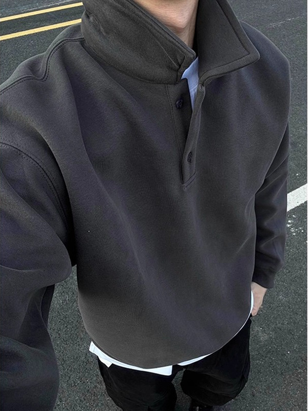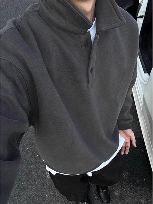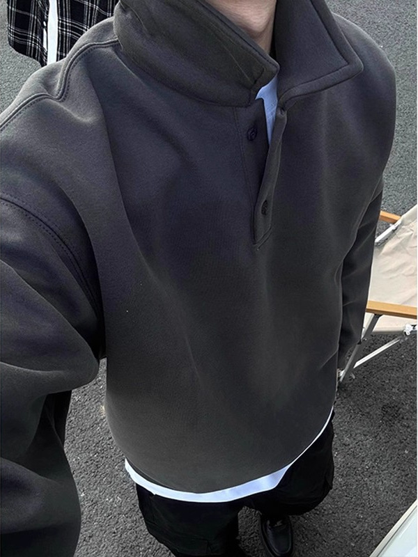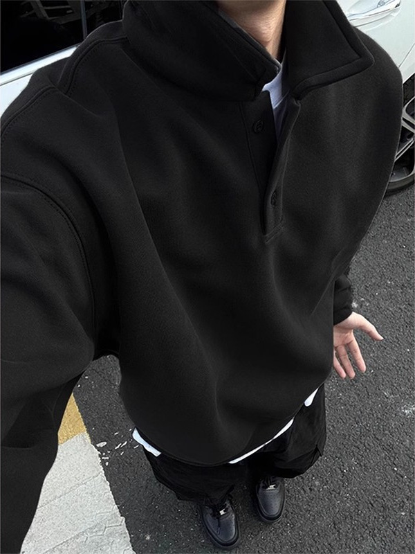 黑色polo领卫衣男春秋款美式潮牌内搭衣服高级感痞帅重磅套头外套