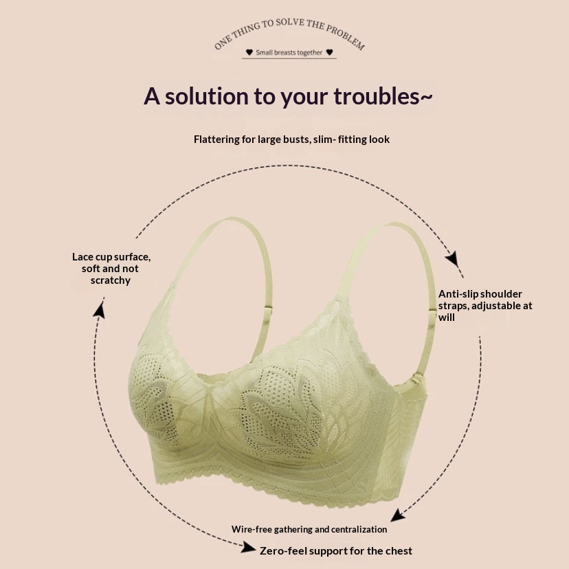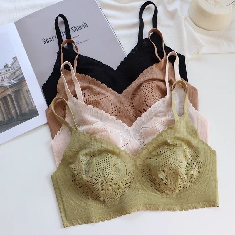 Clothing Color Shellfish [ultra-thin Lace Latex] Breathable Summer Underwear Women's Big Chest Small Without Steel Ring Abdomen Breast Bra