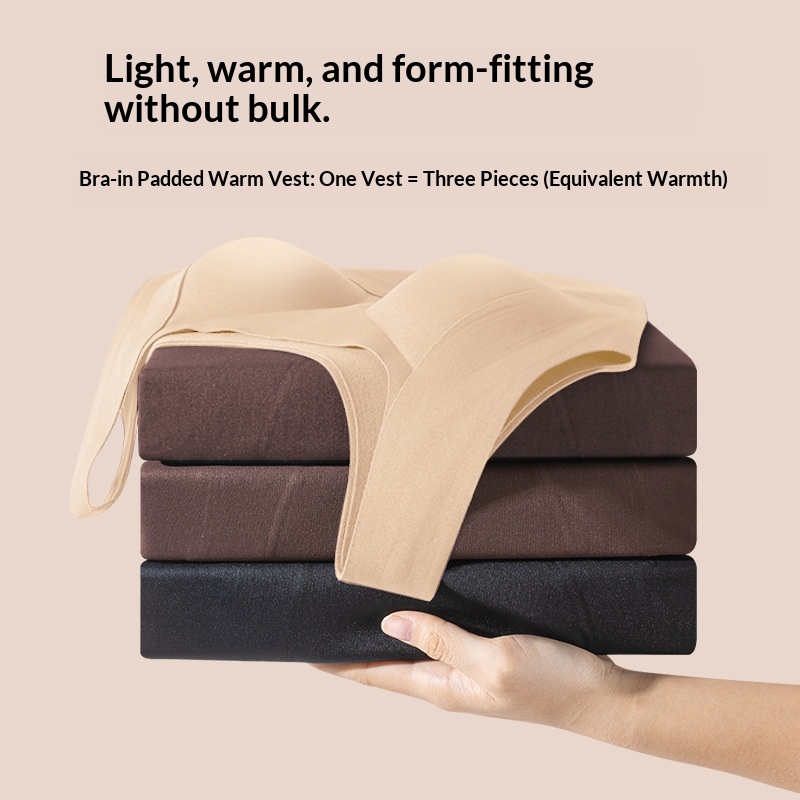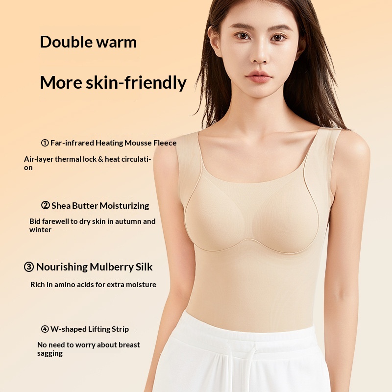 Autumn And Winter Brushed Thermal Vest For Women With Integrated Chest Pads, No Need To Wear A Bra, Fleece-Lined, Tummy Control, Can Be Worn As An Inner Layer Or Outerwear Base Layer