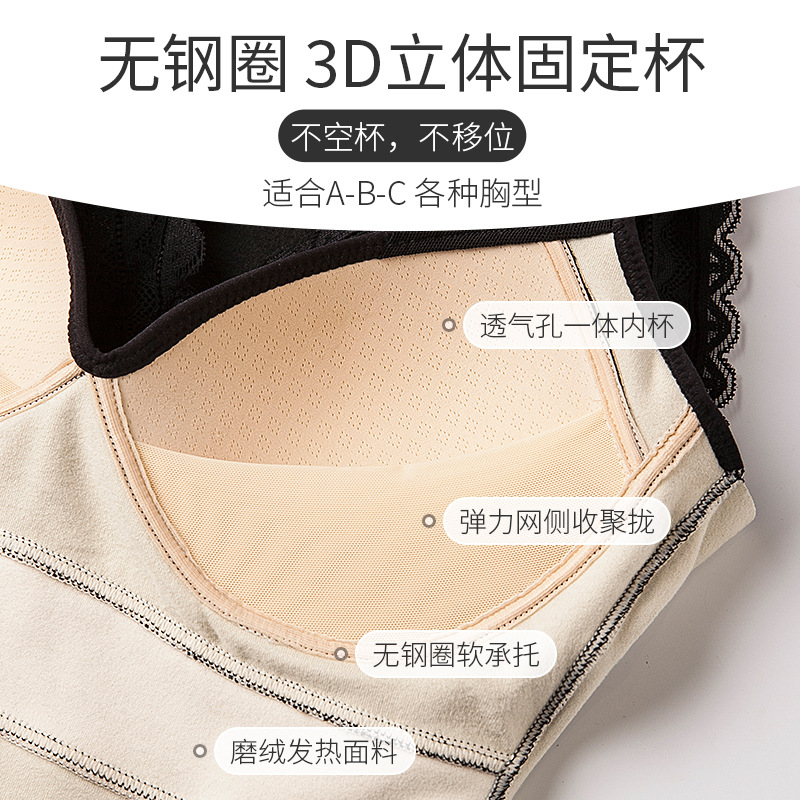 De Velvet Thermal Vest Women's V-neck One-piece Chest Pad Fleece-lined Thickened Slim-fit Lace Underwear