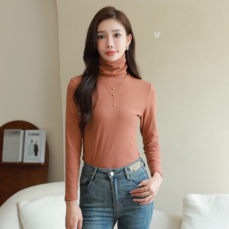 Women's Turtleneck Thermal Top Fleece-lined De Brushed Pile Collar Fashion Bottoming Single-wear Bottoming Underwear