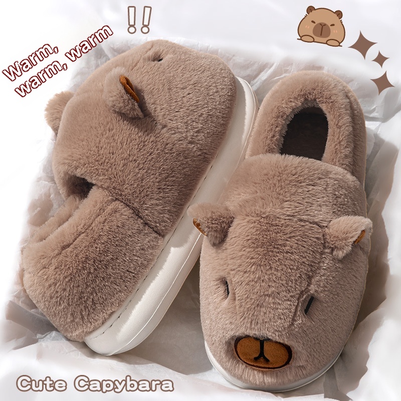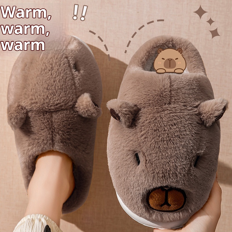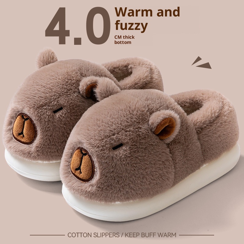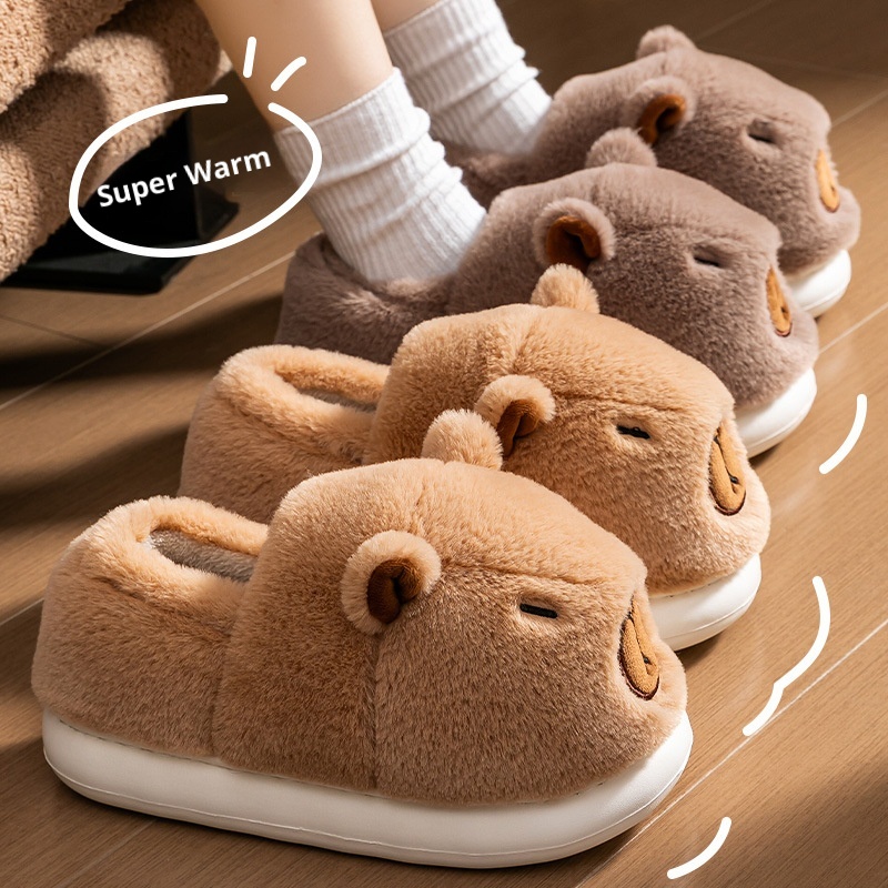 Cute Capybara Cotton Slippers Men's Autumn Home Cute Capybara Non-slip Warm Plush Cotton Slippers Men
