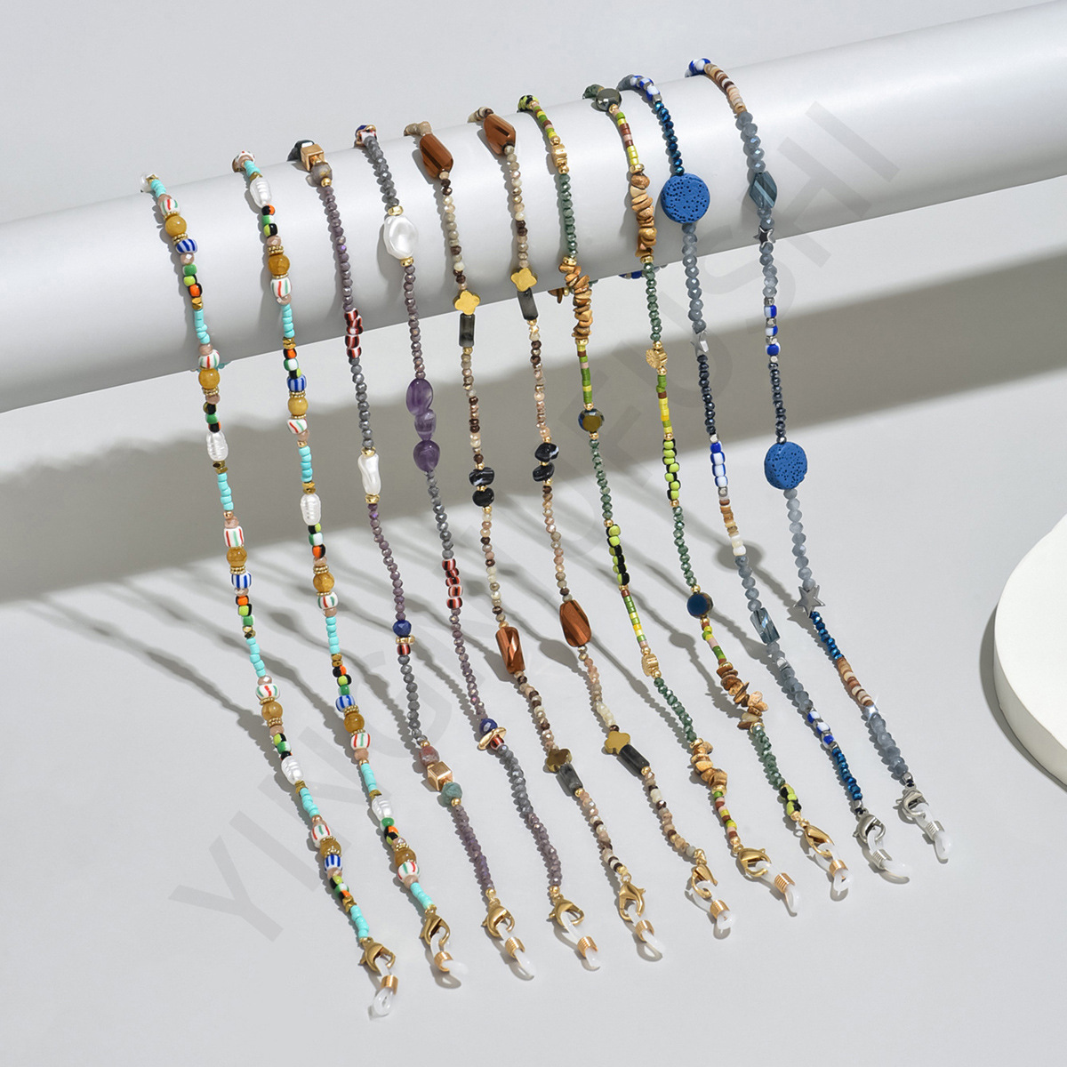 KJJapanese And Korean Glass Beads Exquisite Gold Bead Chain Detachable Glasses Chain Mask Chain Airpods Earphone Anti-lost Chain