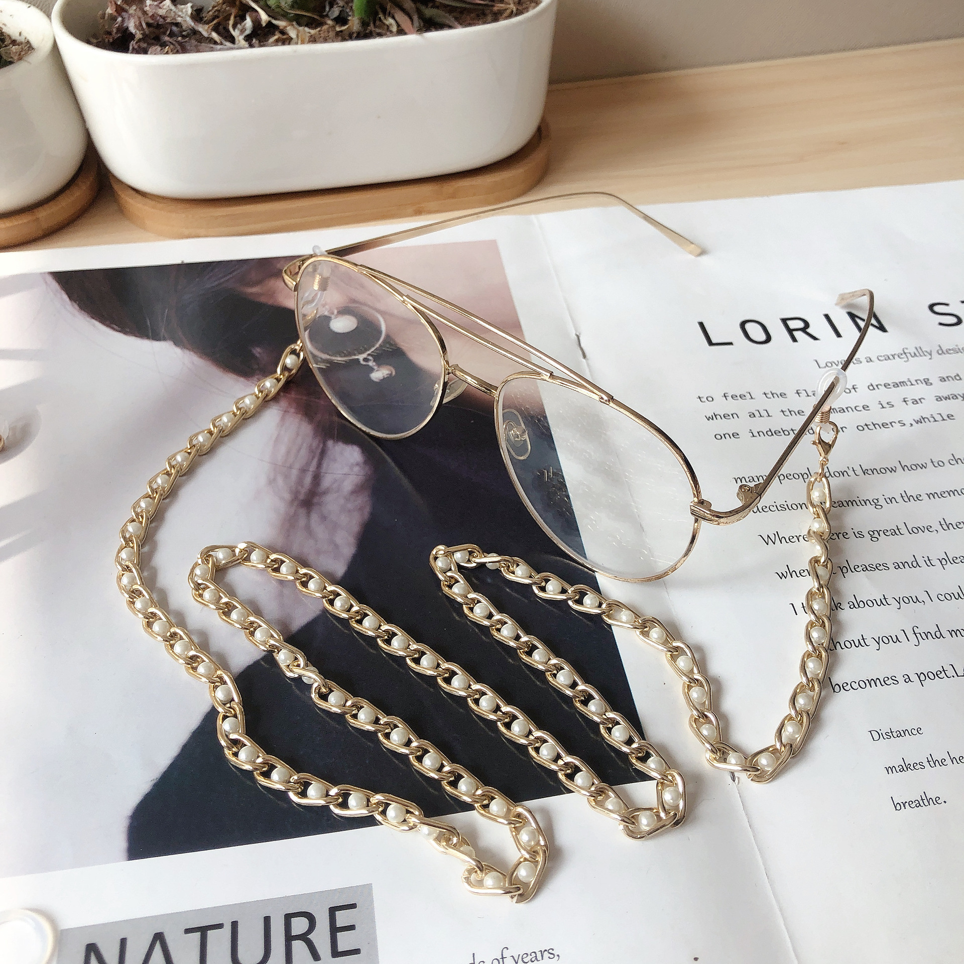 KJJapanese And Korean Glass Beads Exquisite Gold Bead Chain Detachable Glasses Chain Mask Chain Airpods Earphone Anti-lost Chain
