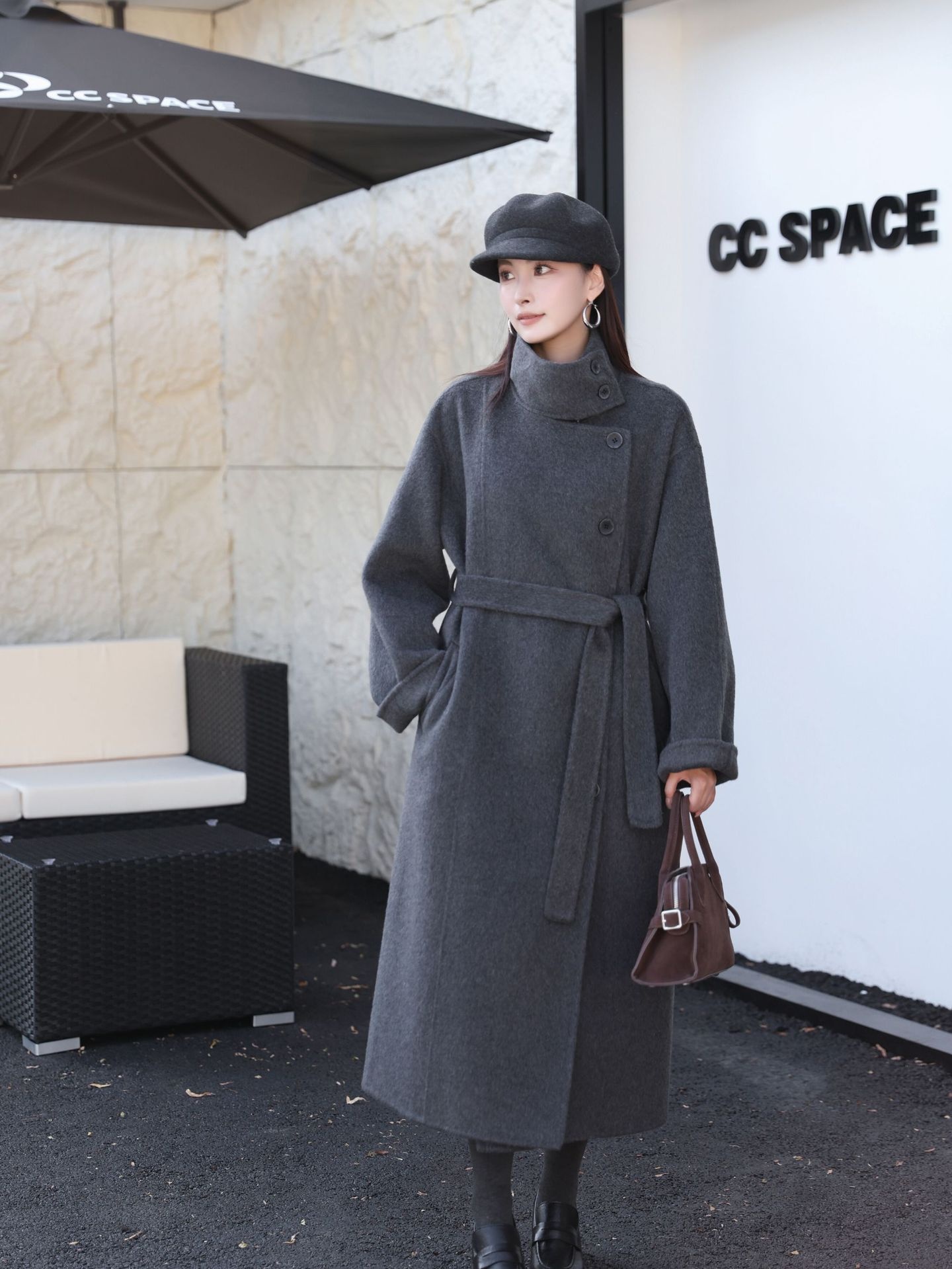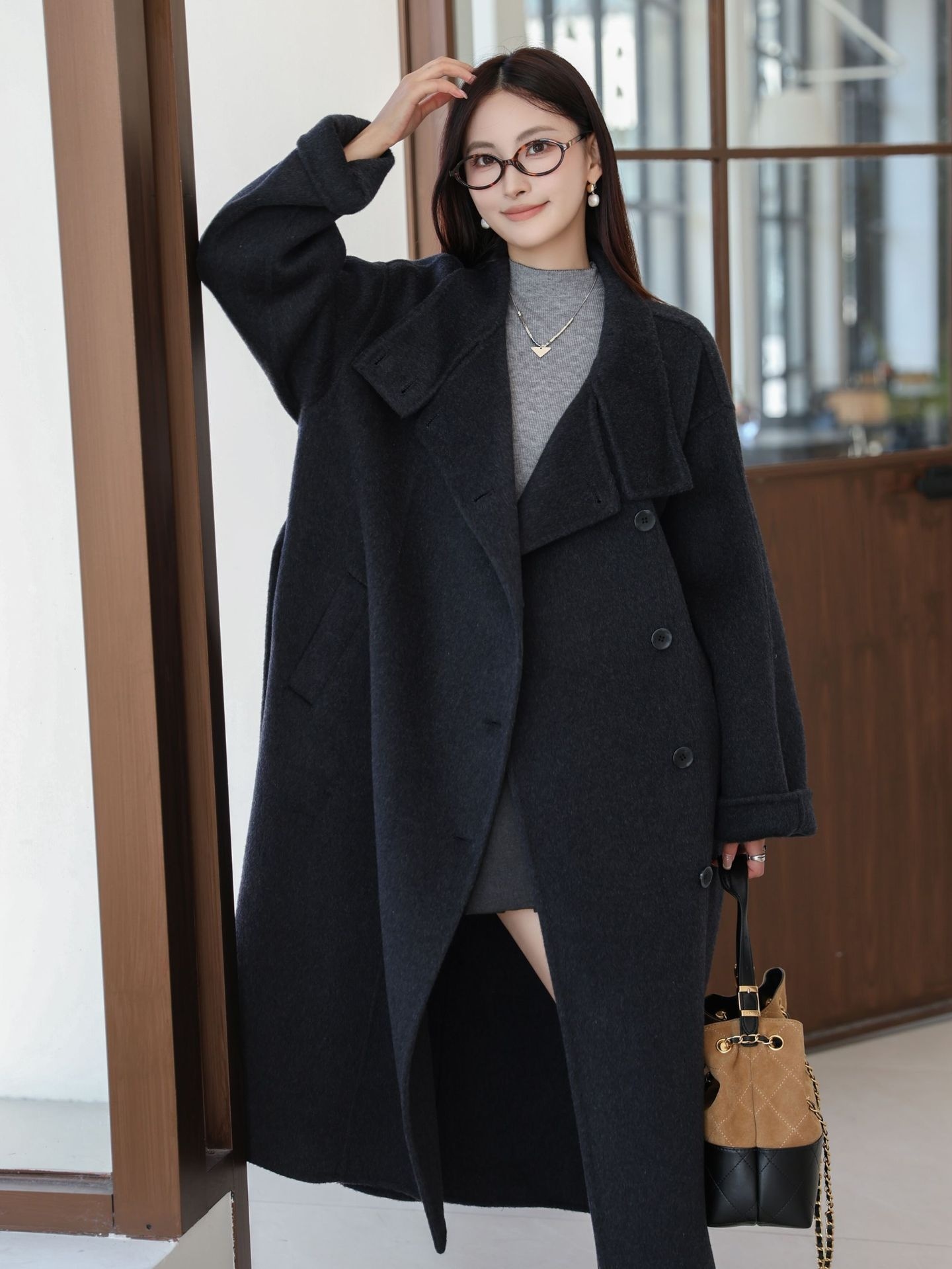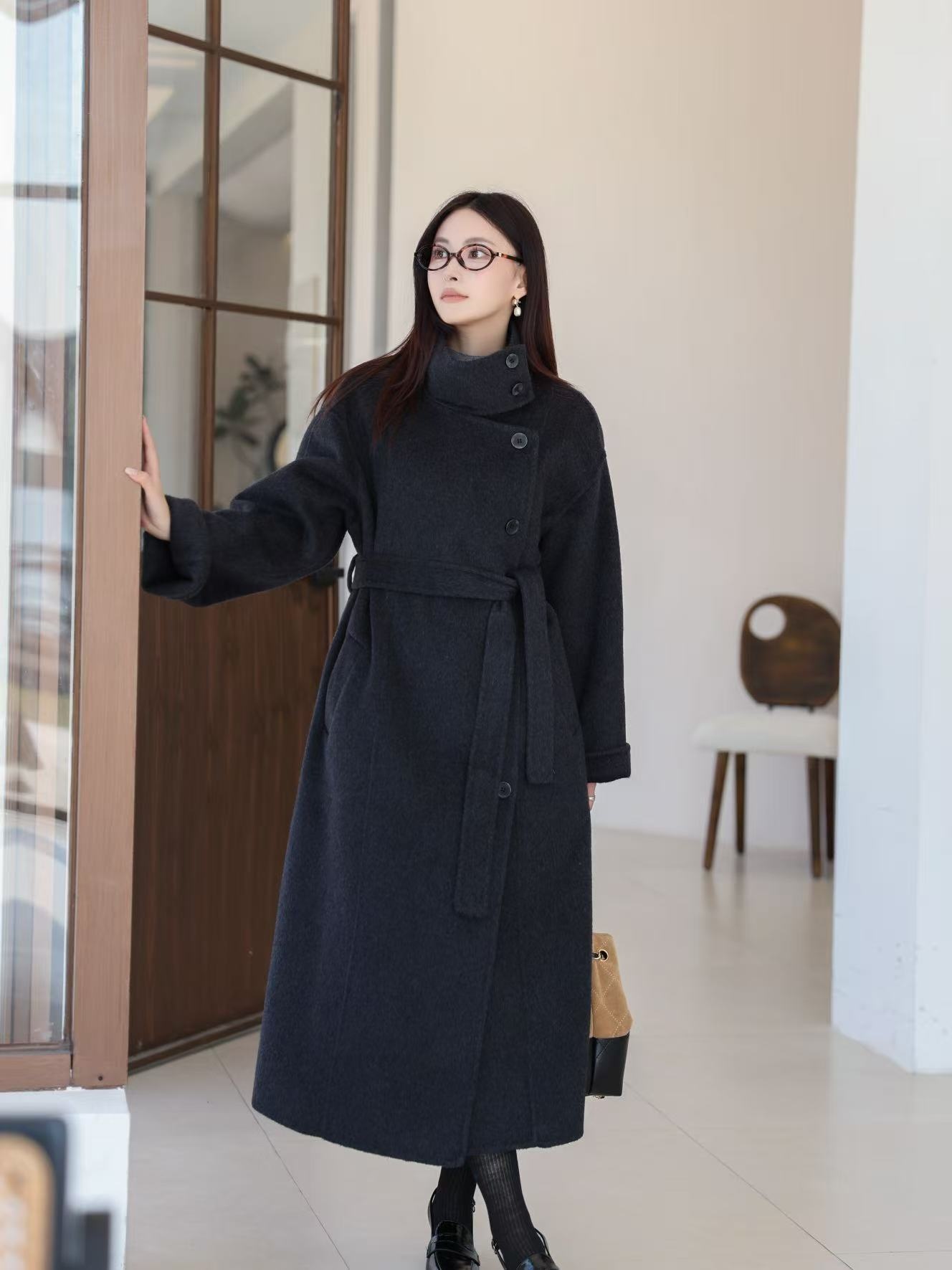 Heavyweight Classic Stand Collar Coat Double-faced Wool Coat Temperament High-end Loose Belt Woolen Coat Women's Winter