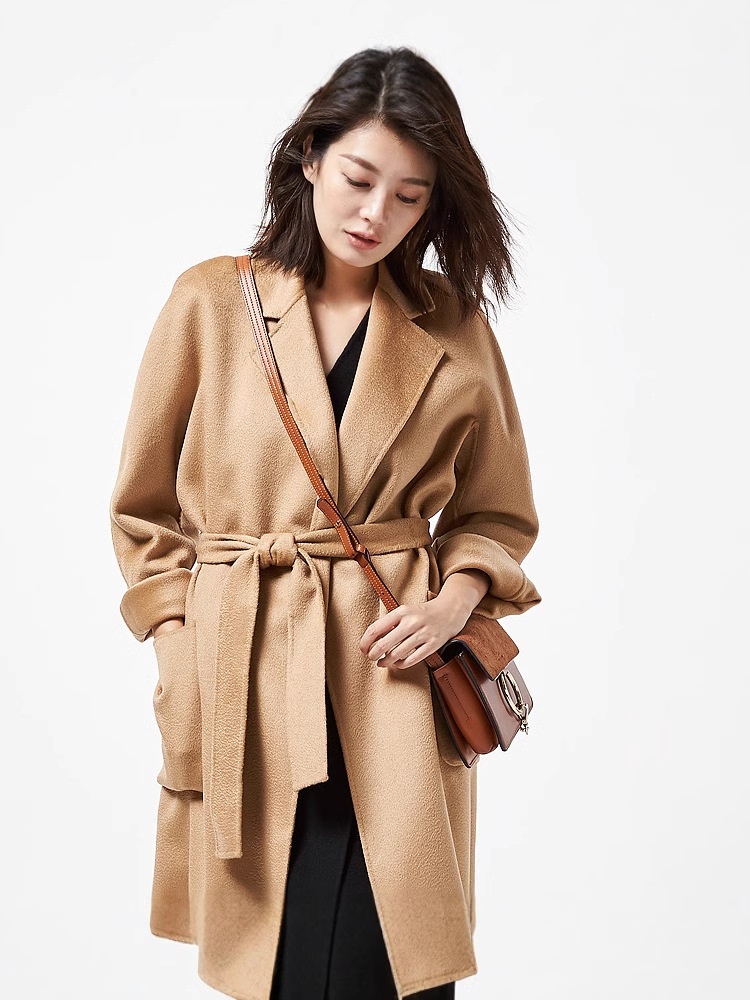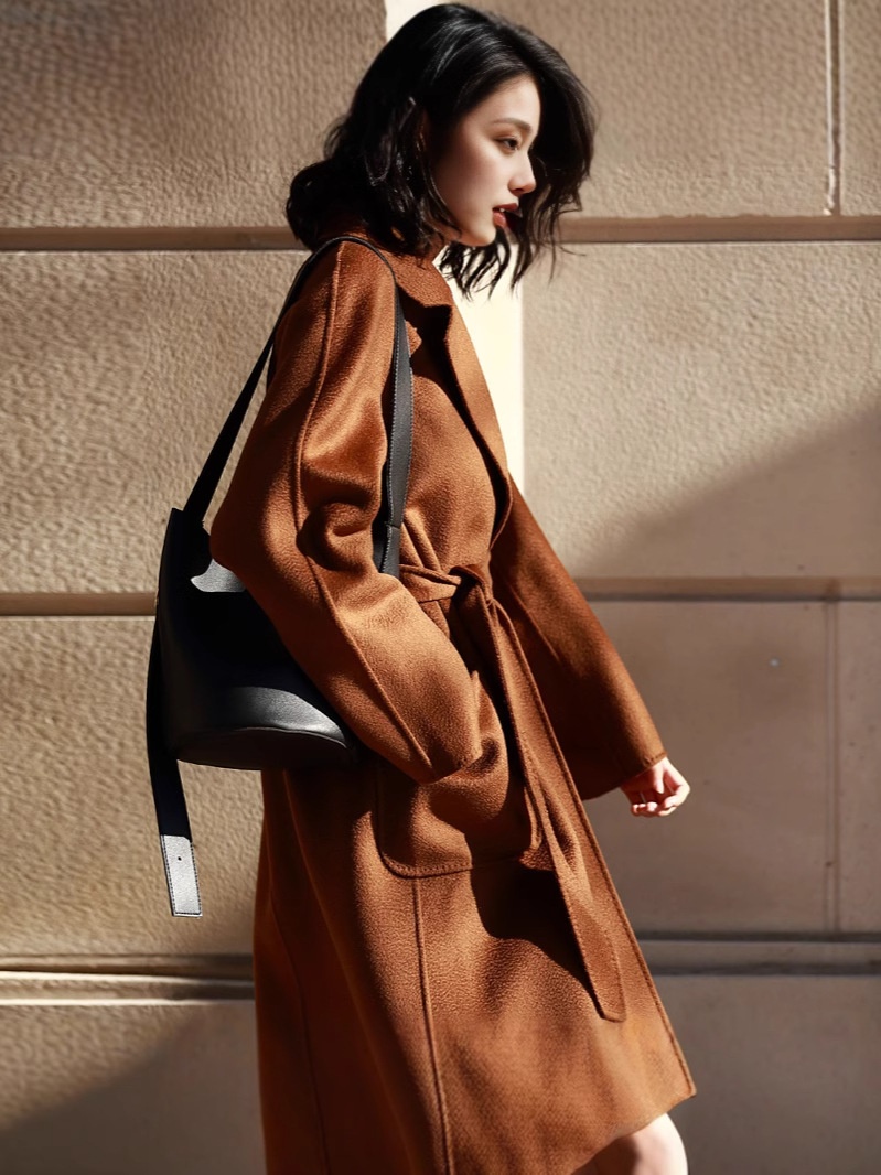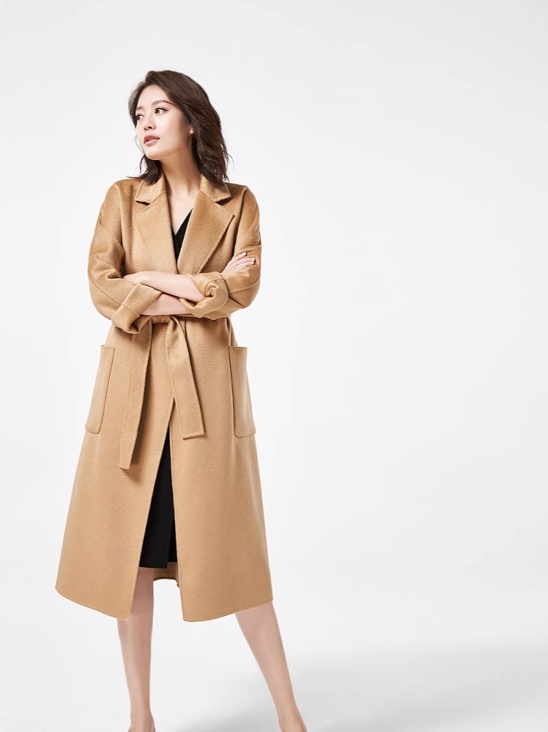 Shenghong 25 Autumn/Winter M Brand Handmade Double-Sided Wool Water Ripple Pattern Coat Wool Cashmere Coat For Women 7202