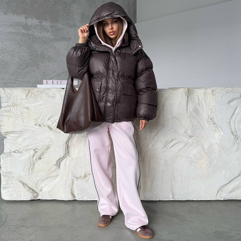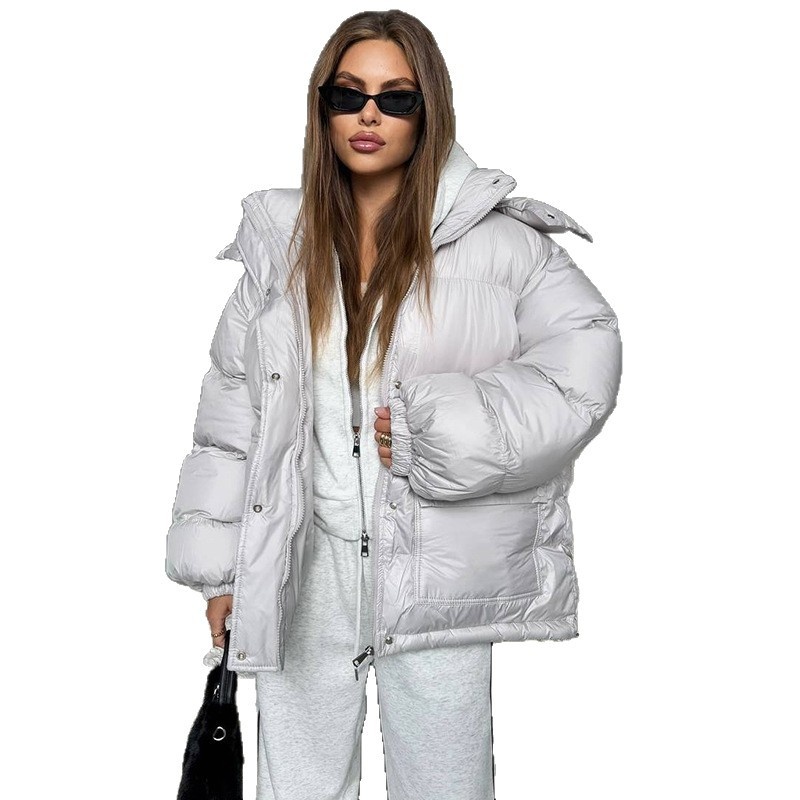 Women's Fashionable Solid Color Loose Hooded Long-sleeved Cotton Jacket