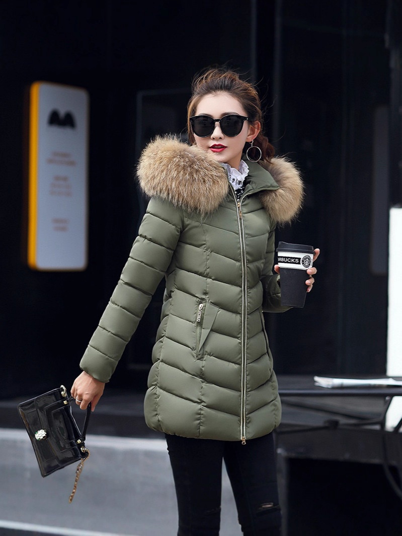 Winter Korean Style Cotton Clothes Women's Mid-Length Slim Cotton Clothes Large Fur Collar Down Cotton Jackets Women's