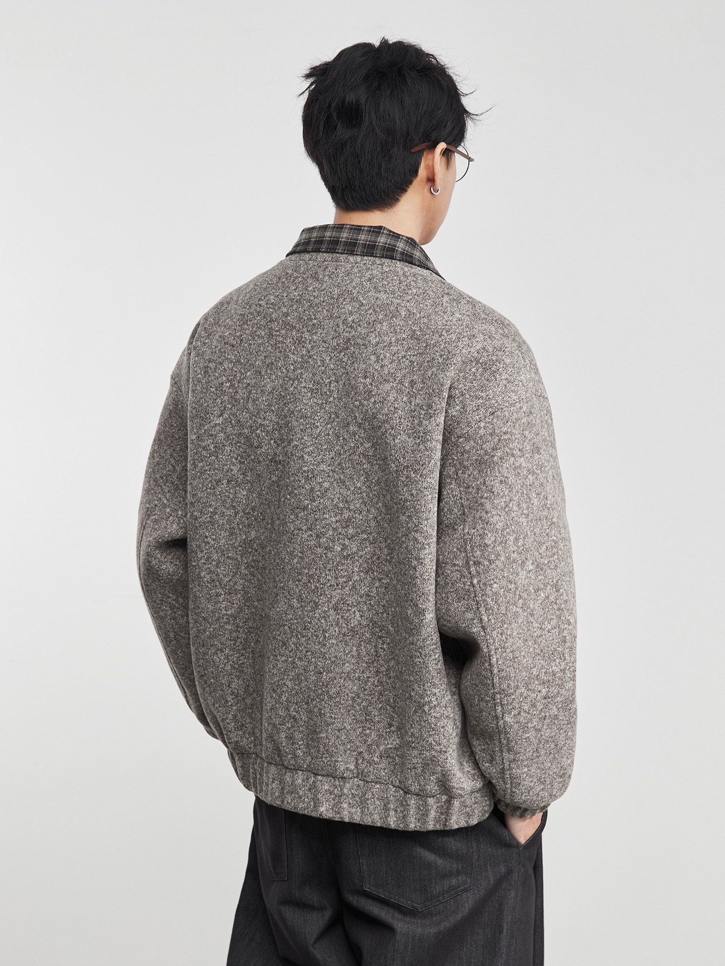 Yizhi "Warm Velvet" Fake Two-piece Plaid Cardigan Plus Velvet Jacket Autumn And Winter Lapel Blended Wool Coat Coat