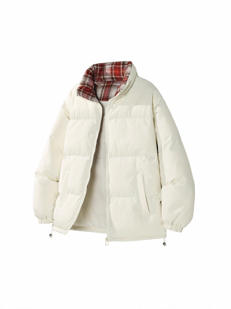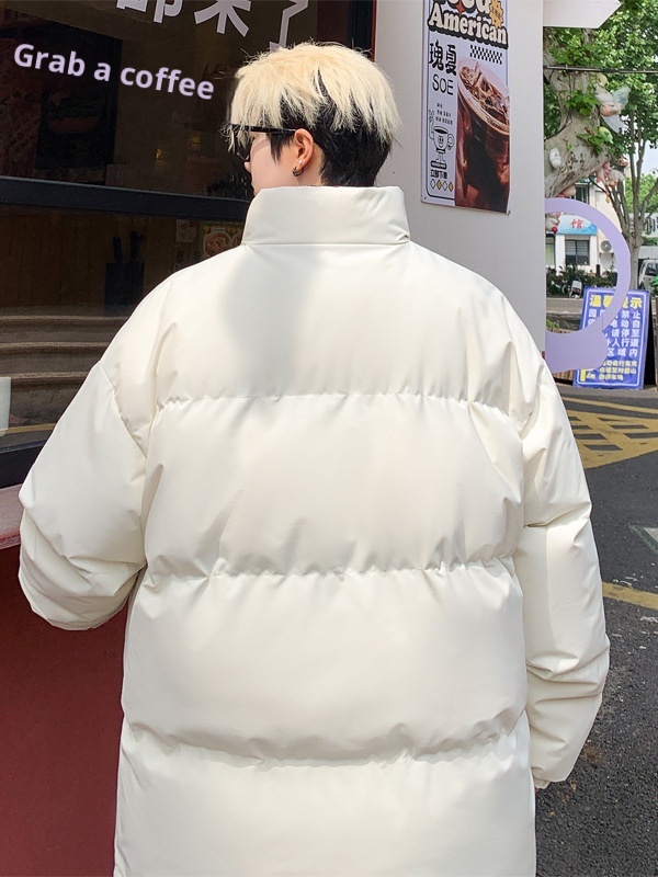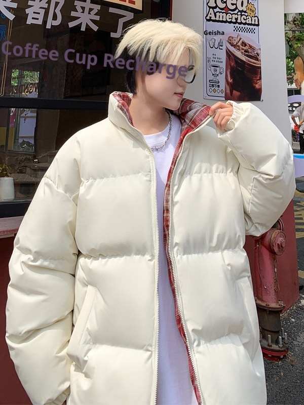 Plaid Stand Collar Bread Cotton Coat Men's Plus Velvet Thick Warm Down Cotton Jacket Boys Cotton Coat