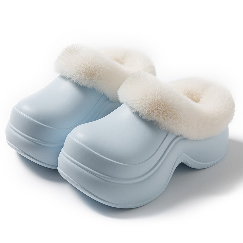 Women's Covered Heel Cotton Slippers For Outer Wear EVA Non-slip Thick Sole With Poop-like Feel And Plush Cotton Shoes