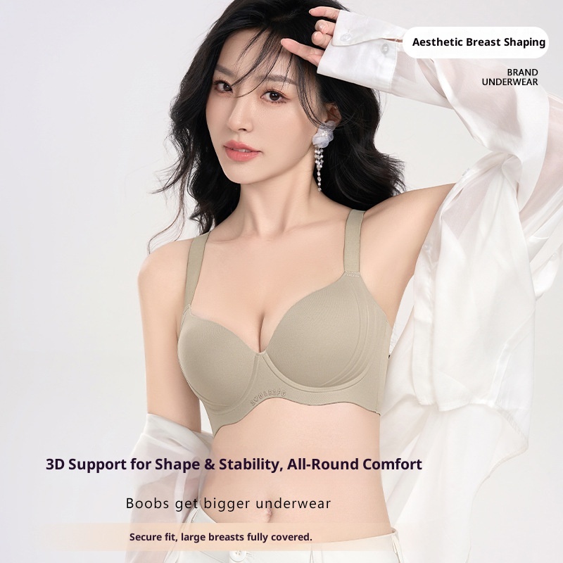Large Chest Showy Small Chest Traceless Underwear Women's Thin Breathable Push-up Anti-sagging Plus Size Bra