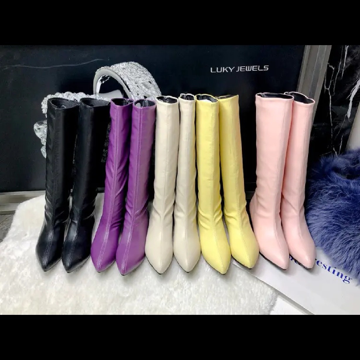 Autumn Low Heel High Tube Pointed Toe Sexy Knight Boots Large Size Foreign Trade Women's Shoes