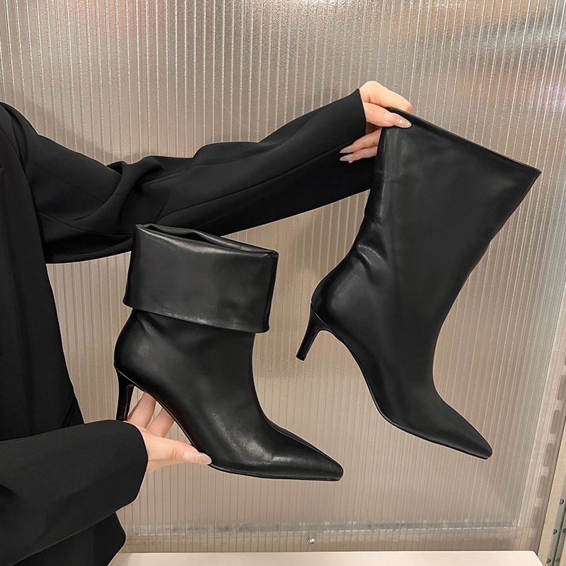 Pointed-toe High-heeled Ankle Boots, Simple And Retro Style For Autumn And Winter, Women's Short Boots, Soft Leather, Slim Fit Boots.