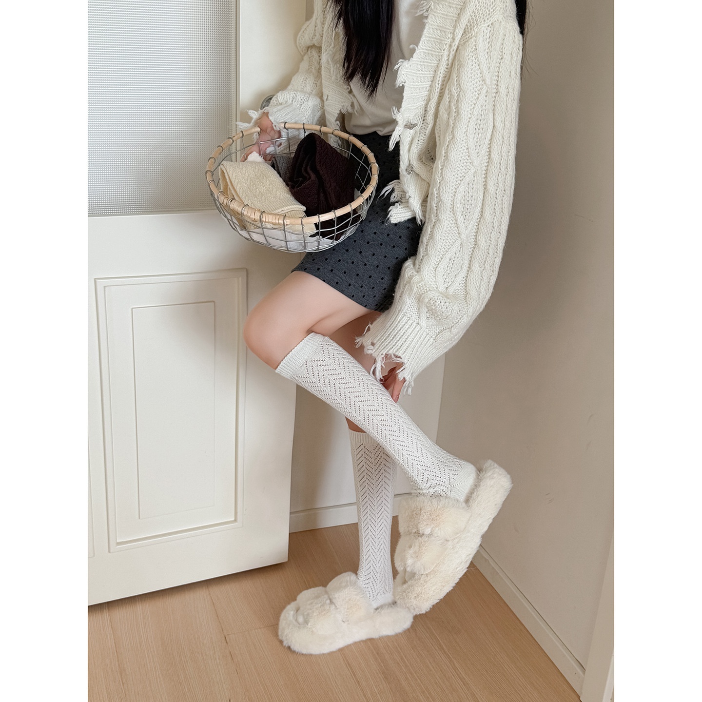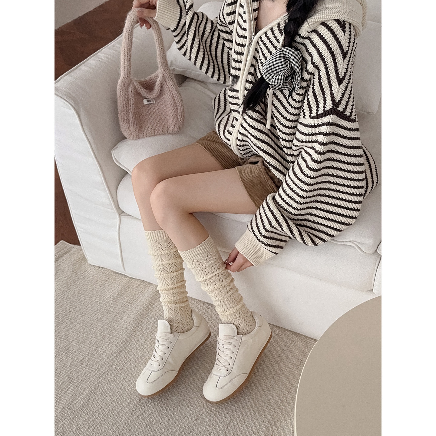 Women's Autumn/Winter Wool Socks, Mid-Calf/Knee-Length, Slouch Socks, Japanese And Korean Style, Simple Wavy Pattern, Retro Style