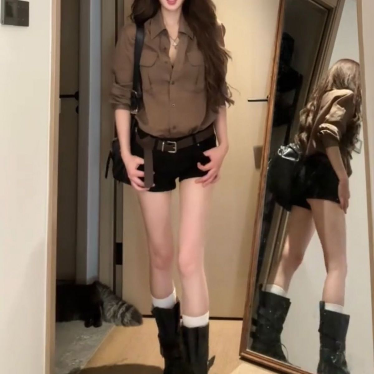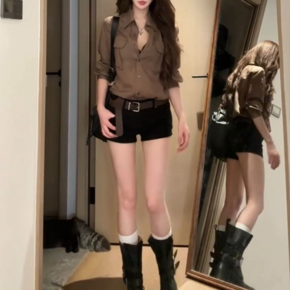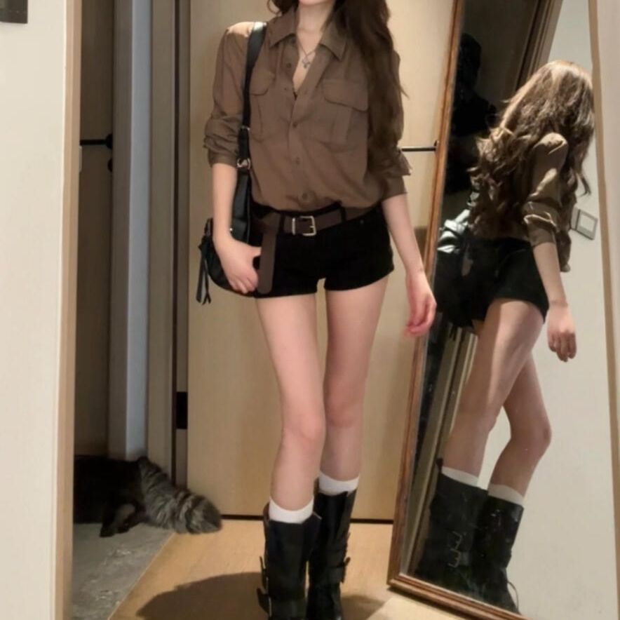 Retro Brown Shirt And Shorts Set