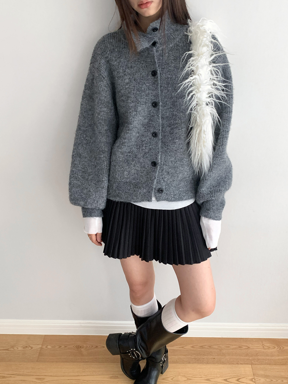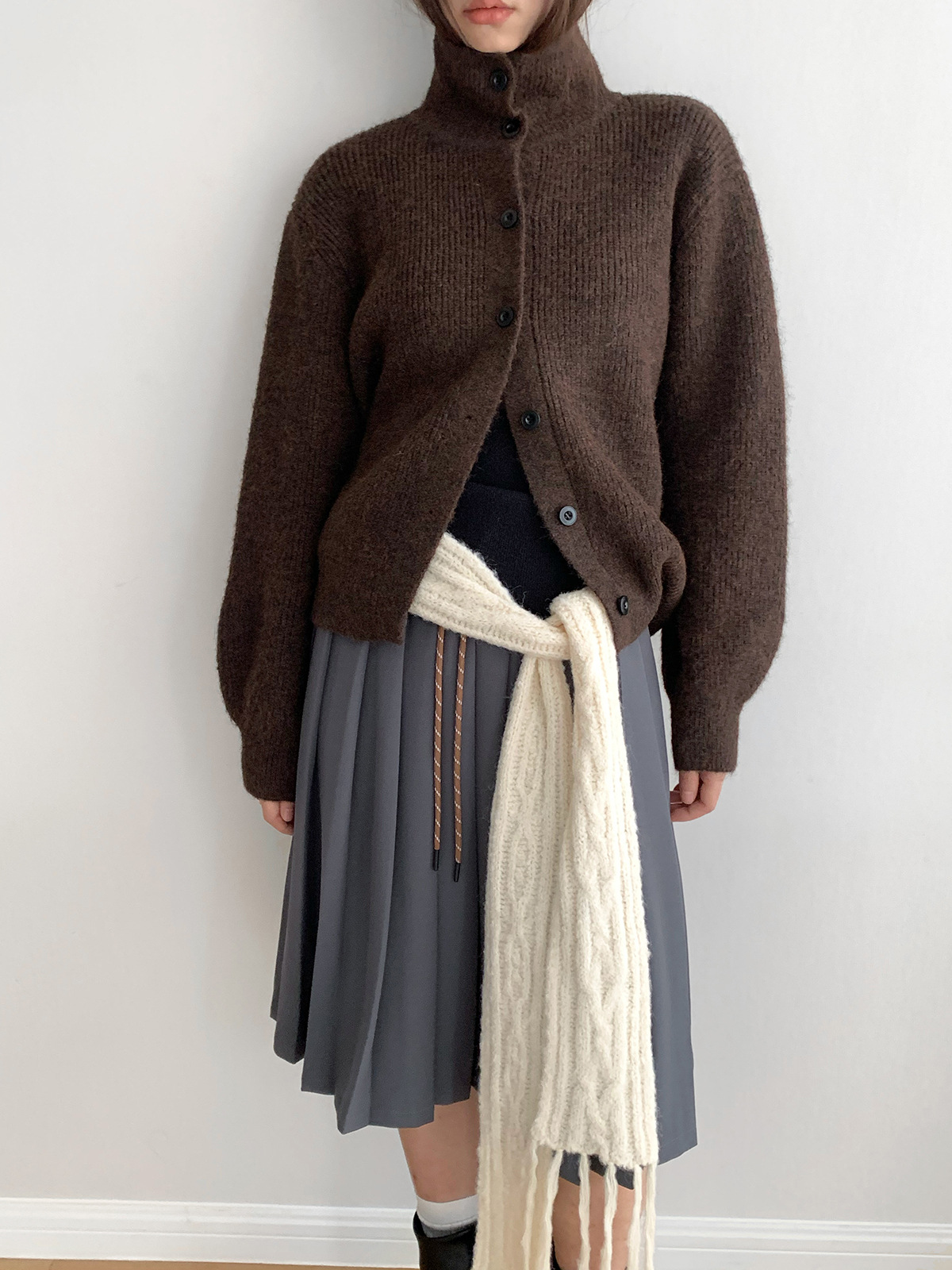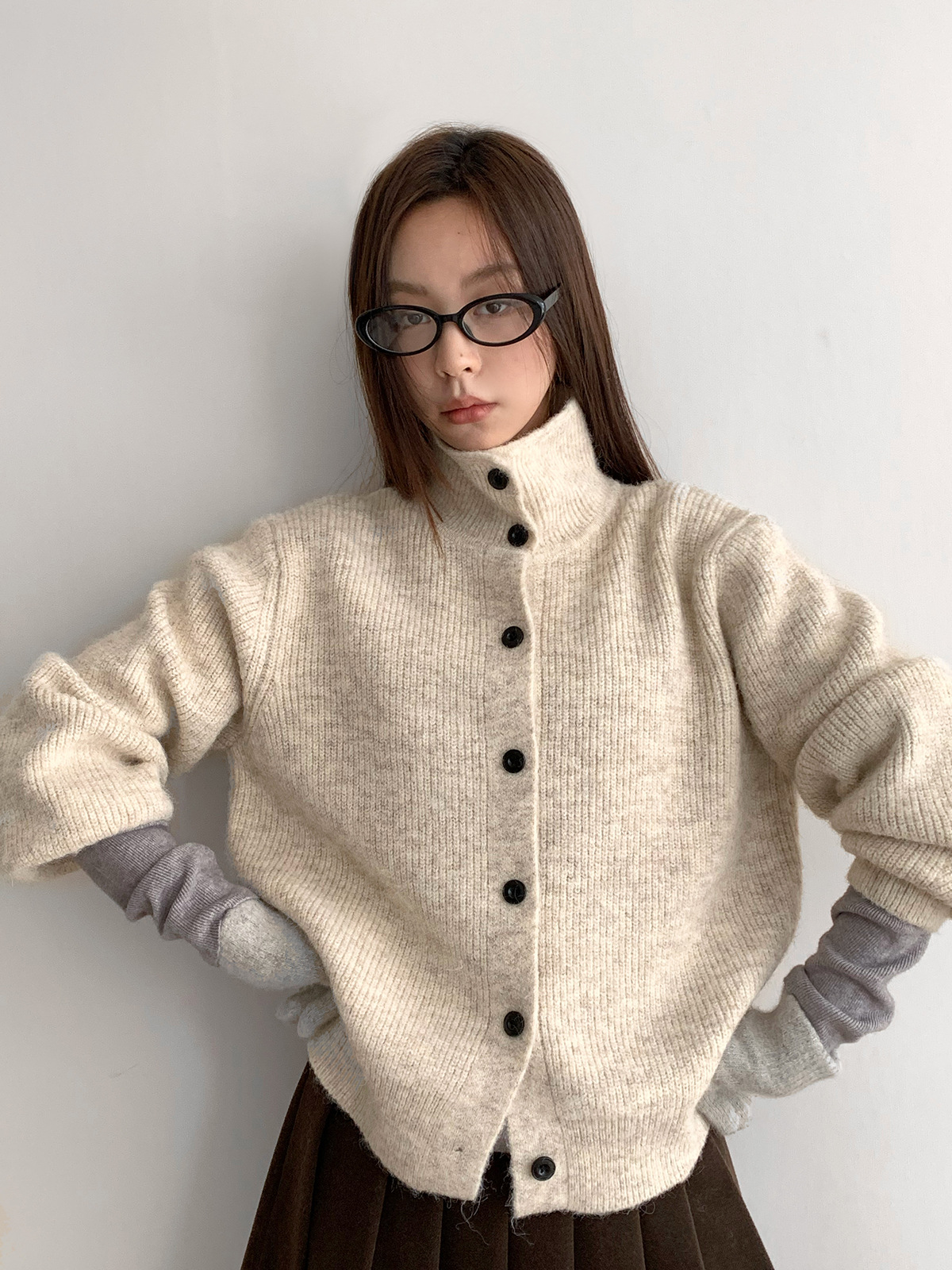 Dorothy Tricolor South Korea Winter Maillard Soft Waxy High Neck Single-breasted Knitted Sweater Lazy Cardigan Jacket