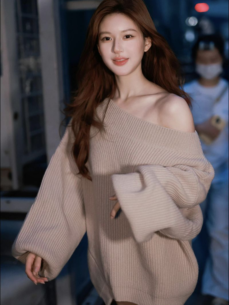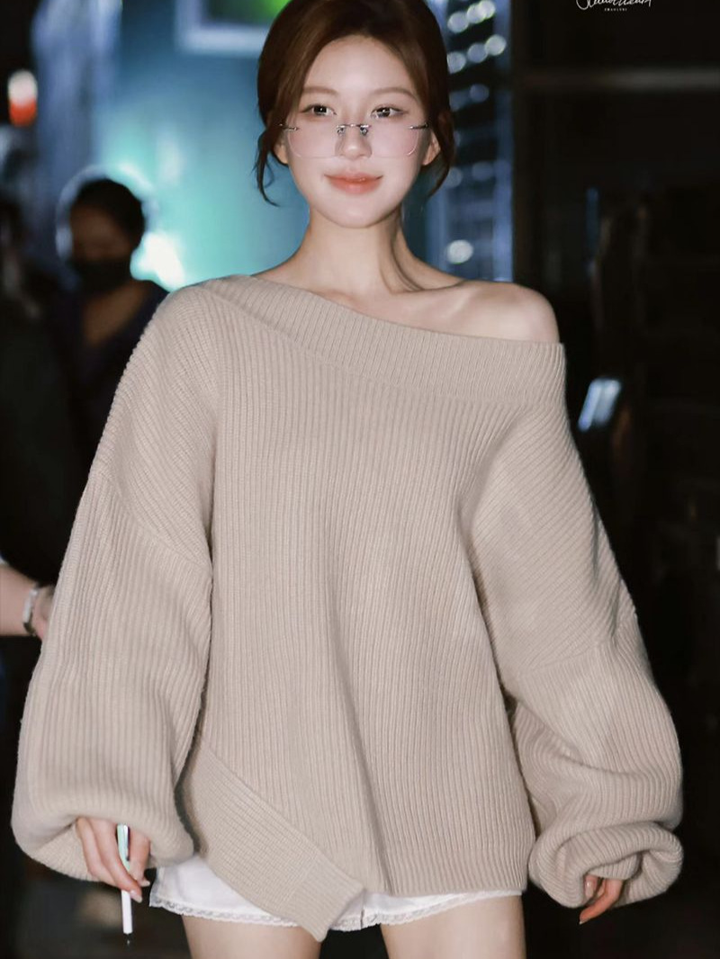 Lazy Style Off-shoulder Puff Sleeve Knit Sweater