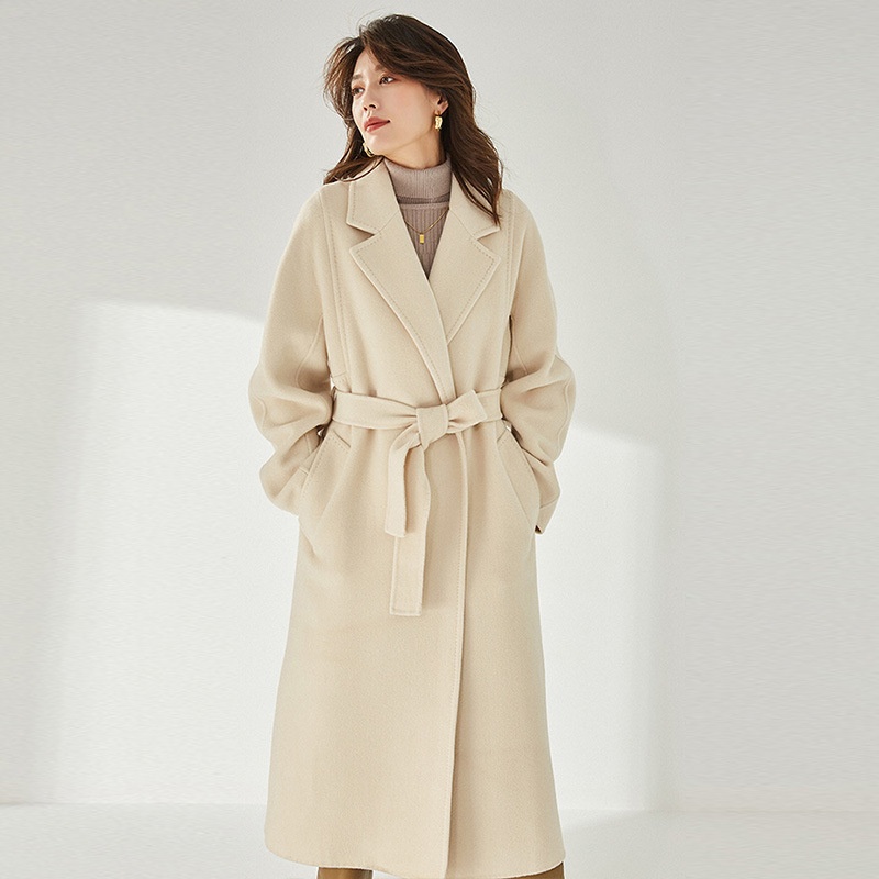 Shenghong 25 Autumn/Winter M Brand Double-Sided Wool Split Lapel Beaded Edge Wool Long Coat For Women 11219