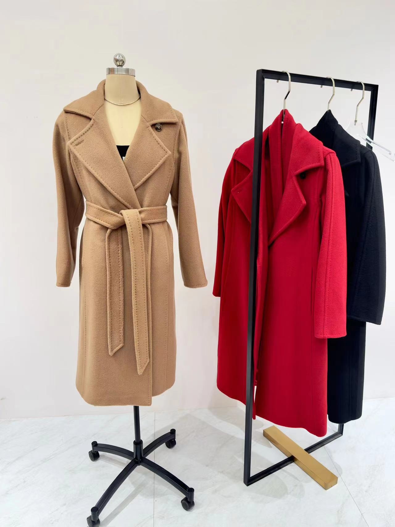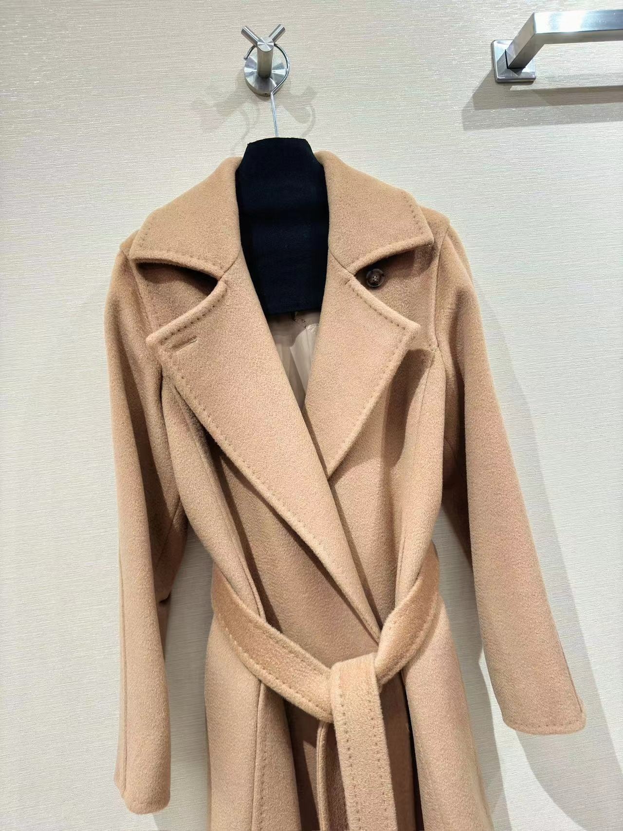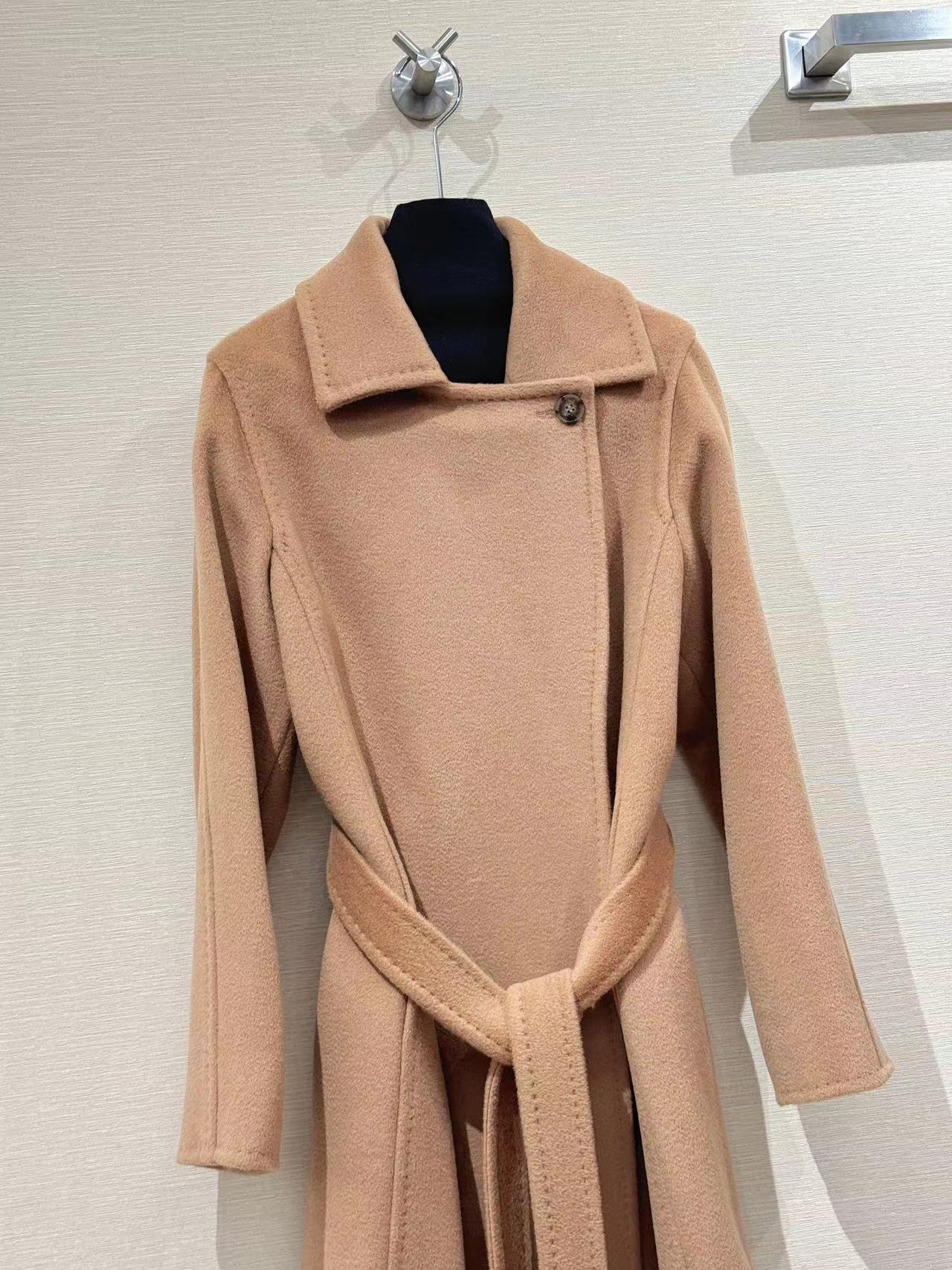 Manuela Luo │ Camel Water Ripple Sheep Wool Outwear Max Lace-Up Horn Button Long Classic Outwear