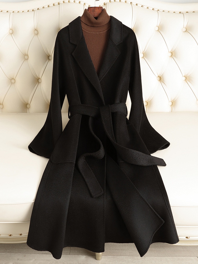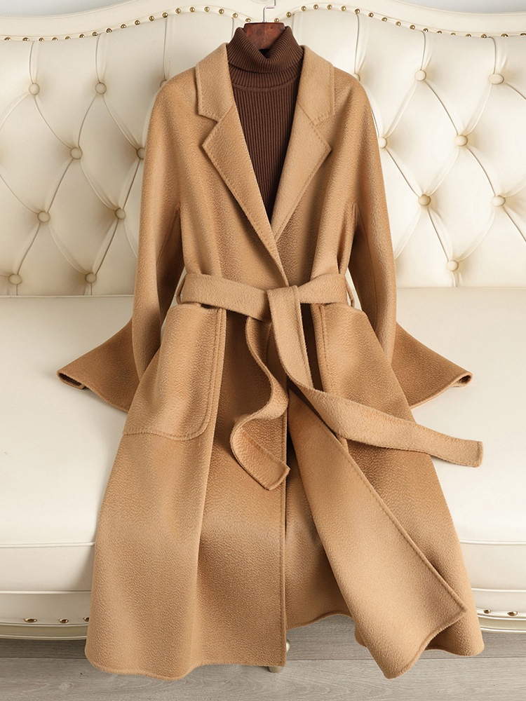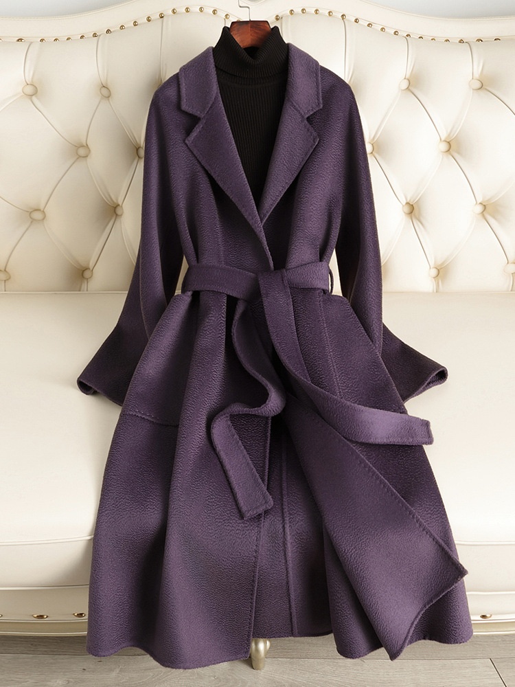 M Brand Water Ripple Double-Sided Wool Coat For Women, Long Style, Autumn And Winter Model, Over-The-Knee High-End Woolen Coat