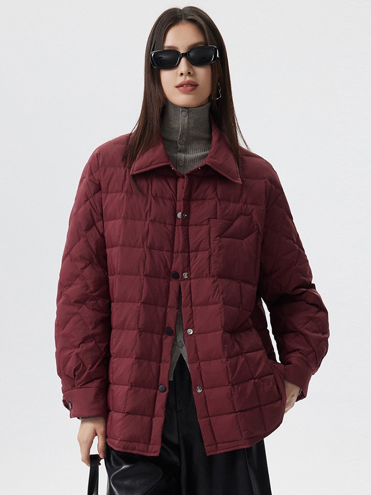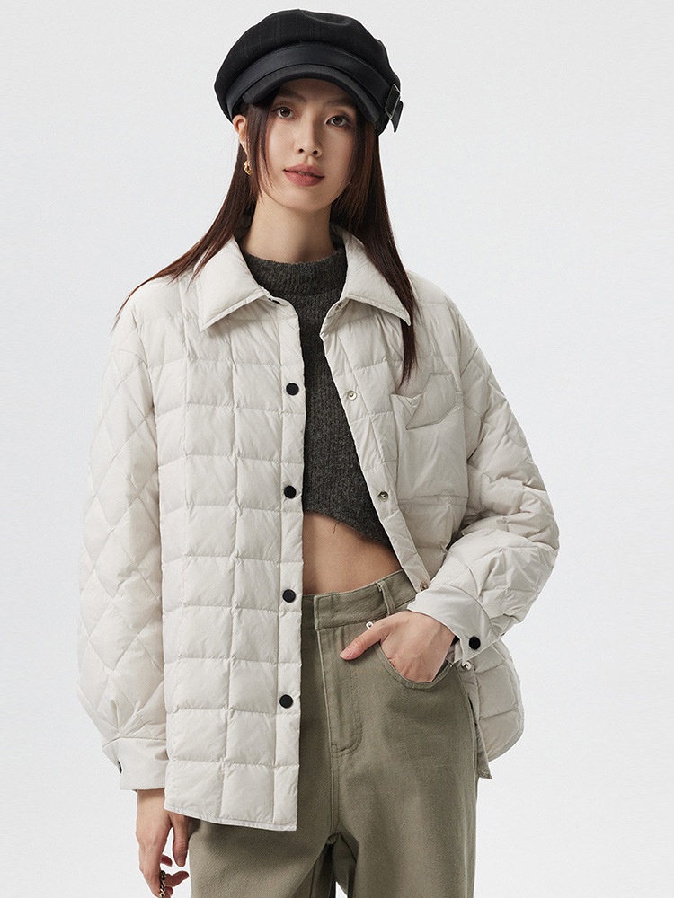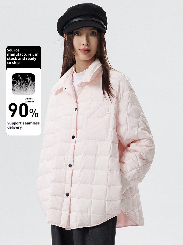 Pinghu Down Shirt Collar Lightweight Down Jacket For Women, Petite Short Style, 90% Down