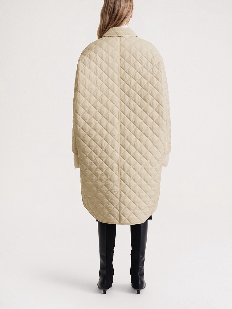 Quilted Cocoon-shaped Mid-length Diamond-patterned A-line Loose-fitting Cotton Coat
