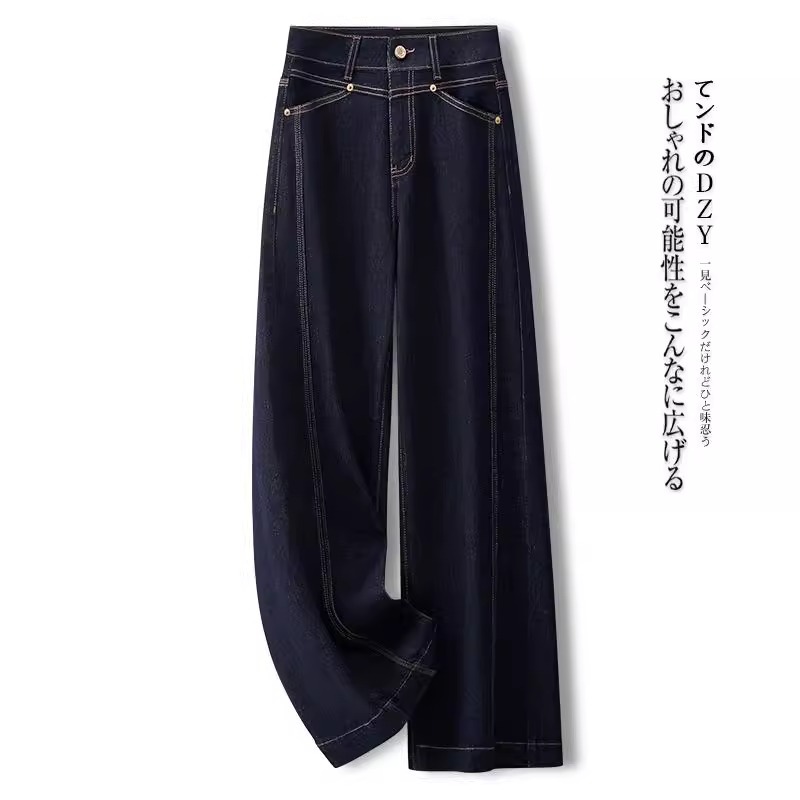 Narrow Wide-Leg Jeans For Women, Autumn Style, High-Waisted, Loose, Slimming, Drapey, Floor-Length Pants, Y Straight-Leg Trousers
