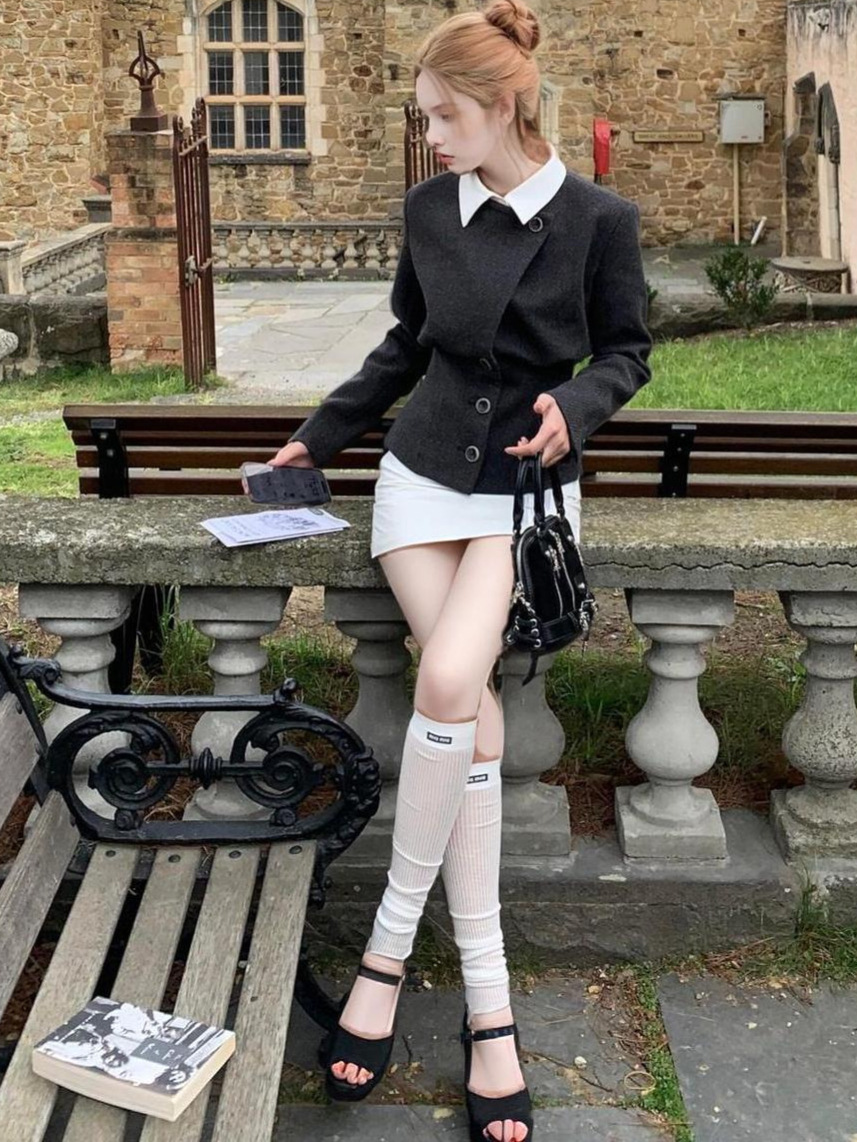 French-style Chic And Elegant Faux Two-piece Lapel Wool Coat