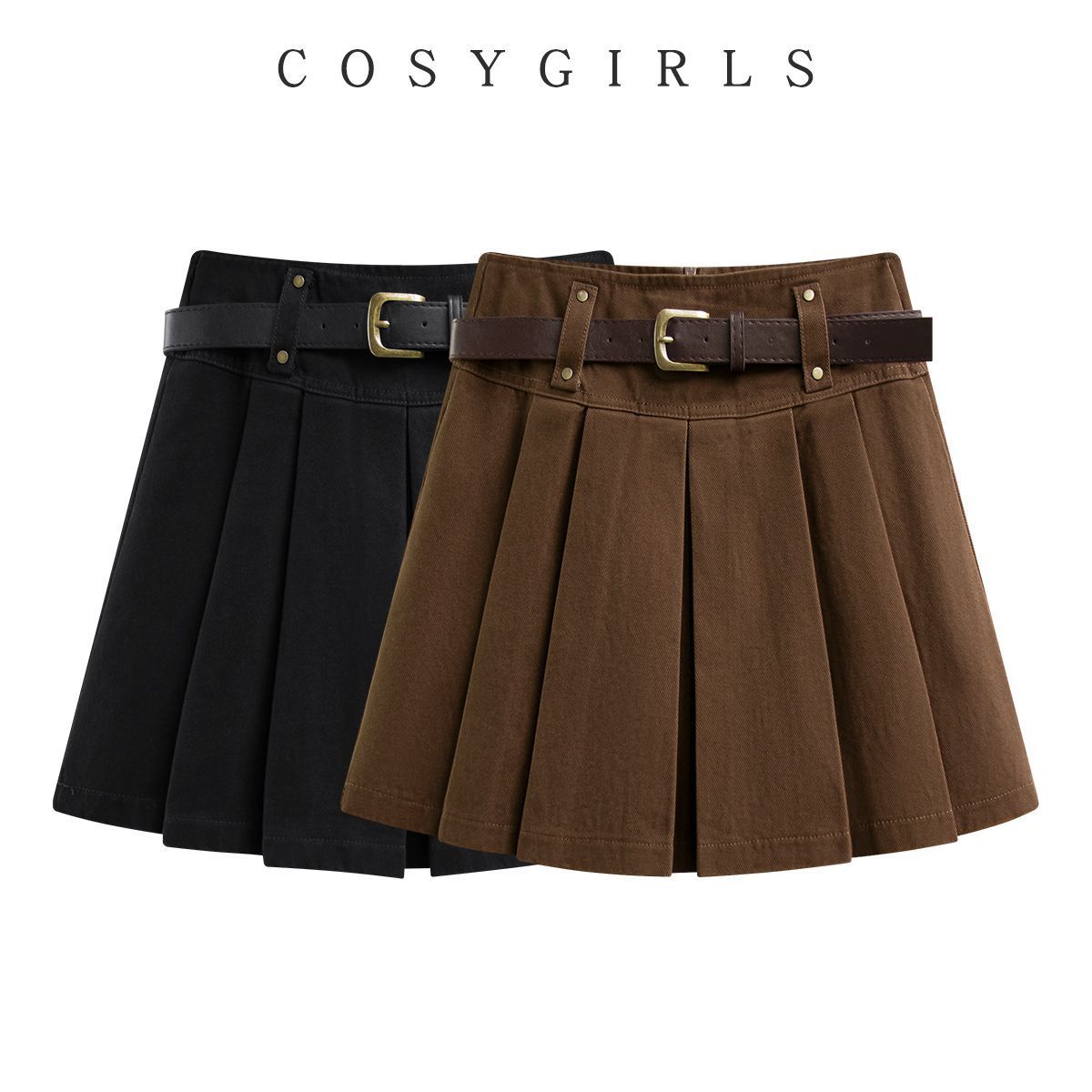 Korean Style Wool Midi Skirt, Elegant Retro Pleated Skirt, High-waisted And Slimming A-line Mini Skirt For Petite Figures
