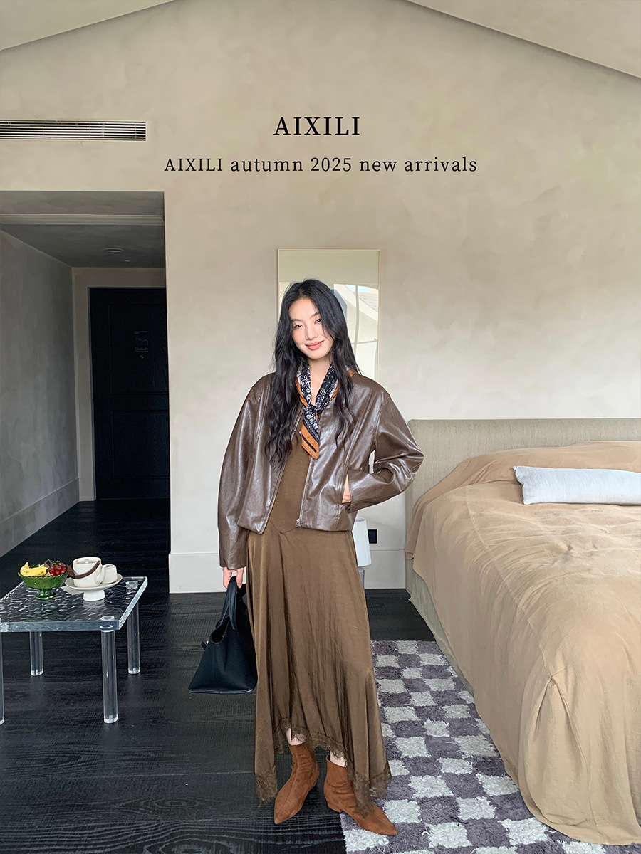 Sophisticated, Minimalist, And Elegant Round Neck Short Leather Jacket