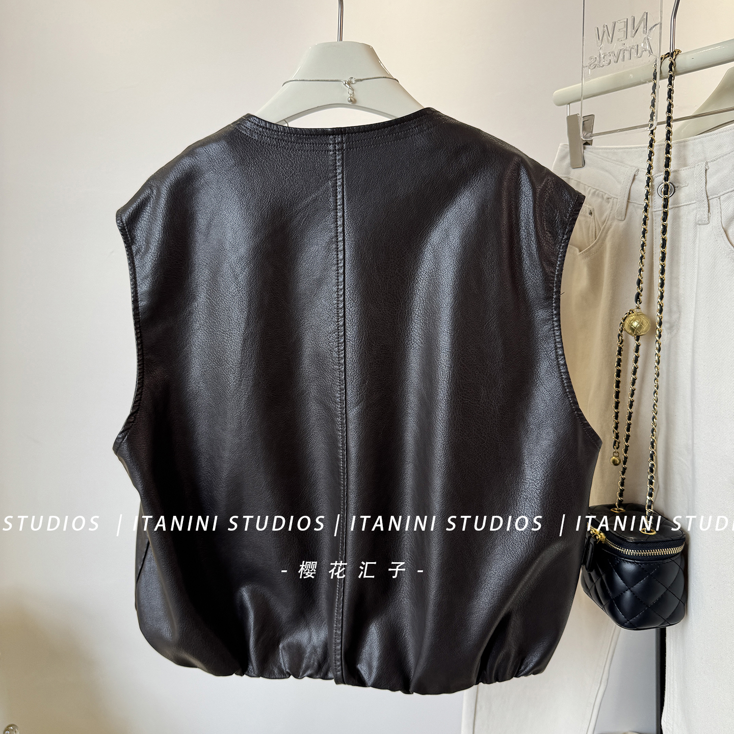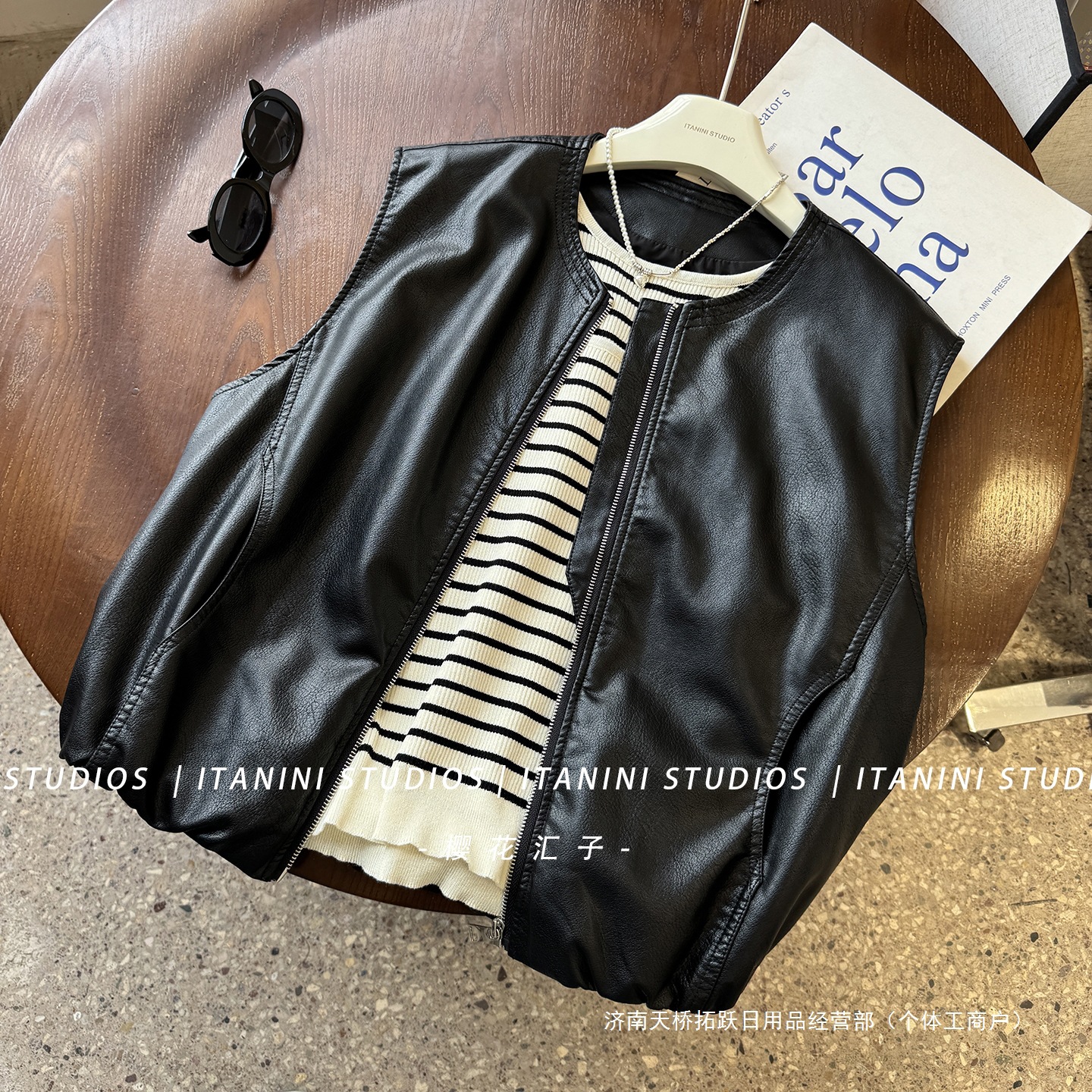 Loose-fitting Slimming Vest, Motorcycle Jacket, PU Leather Casual Wear