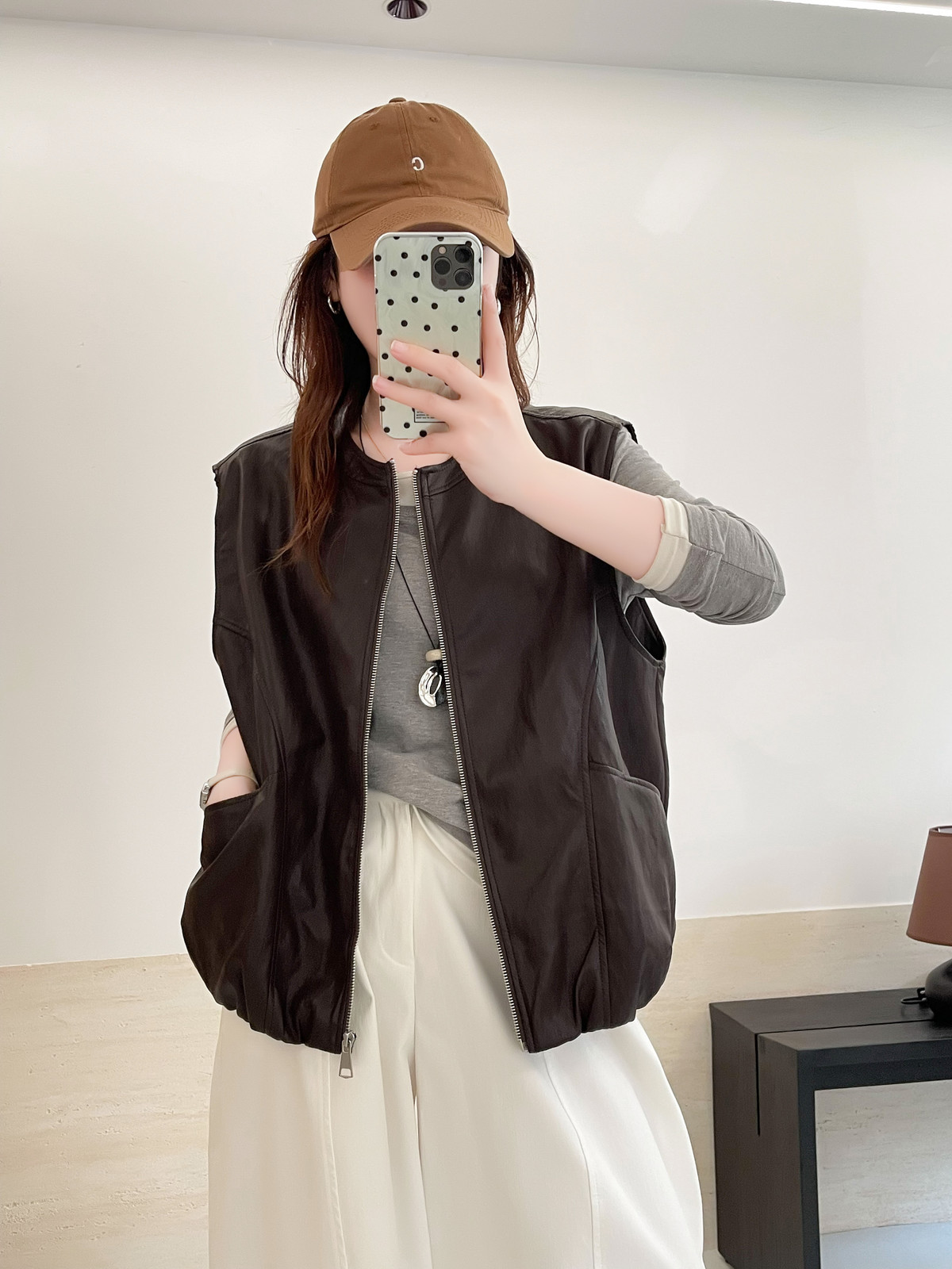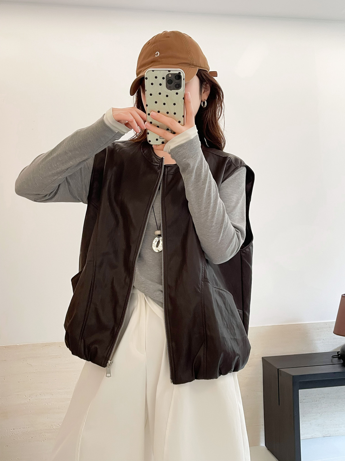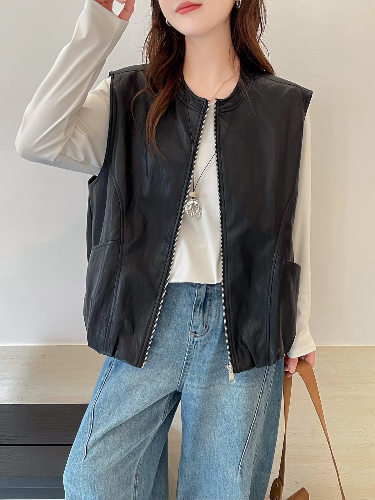 Outdoor Soft Leather Vest Layered Over A Vest Top