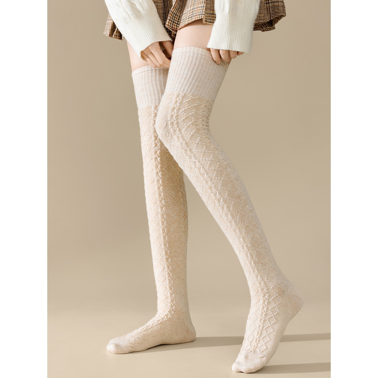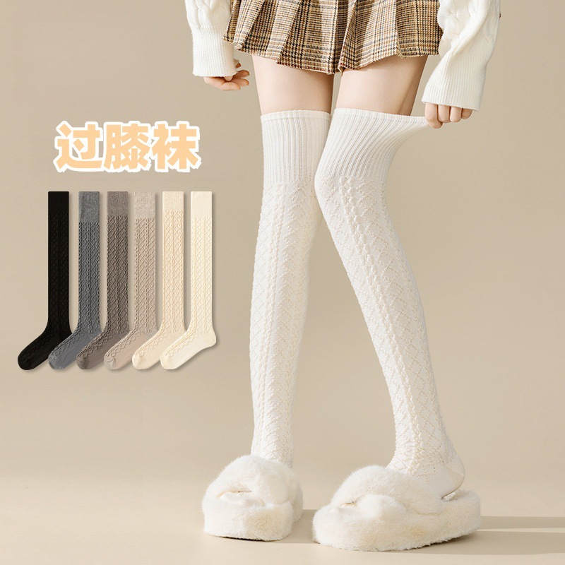 Women's Autumn Socks, Japanese Style Cable Knit Calf Socks, Solid Color Long Over-the-knee Socks, Versatile Korean Style JK Socks