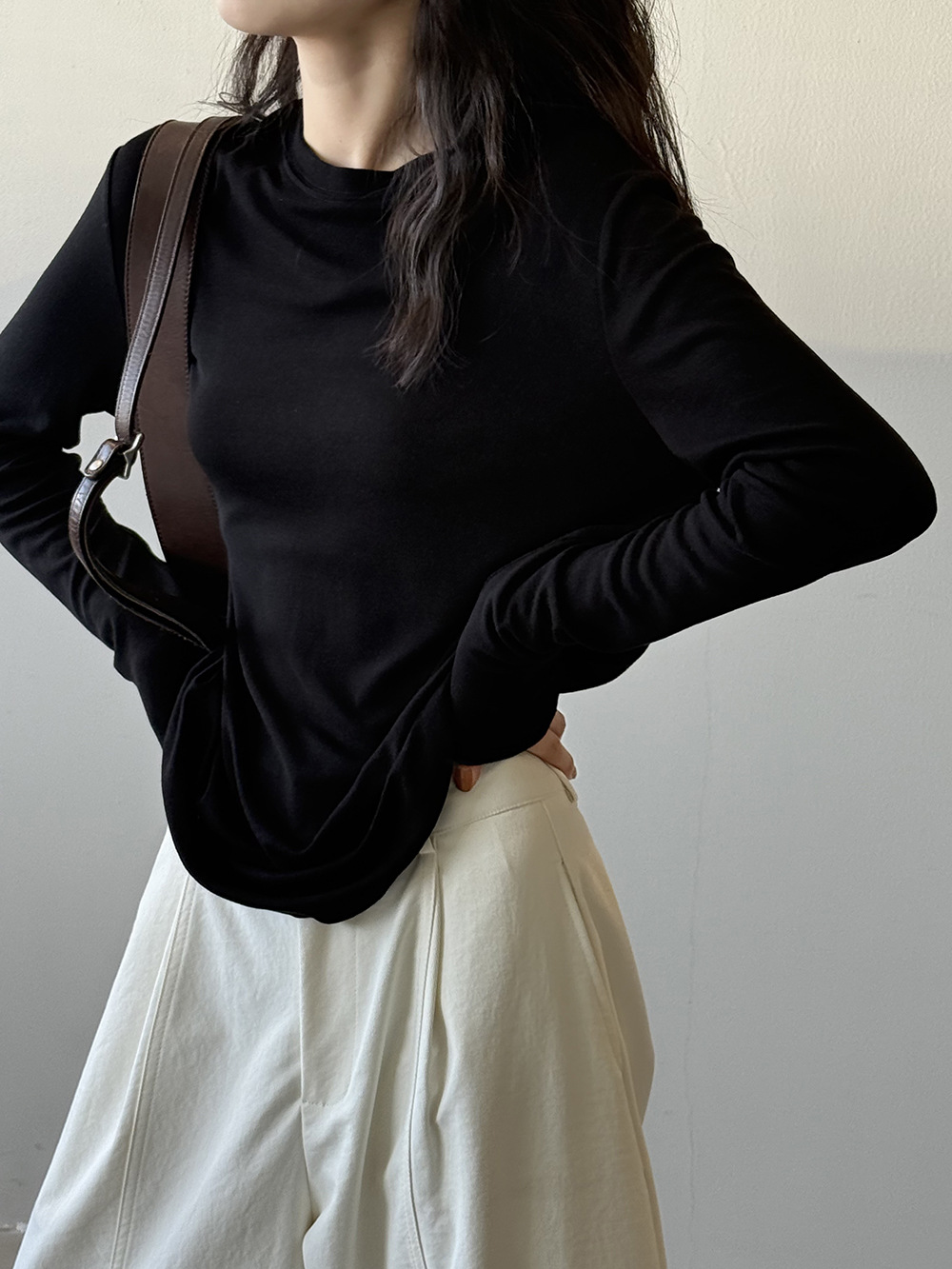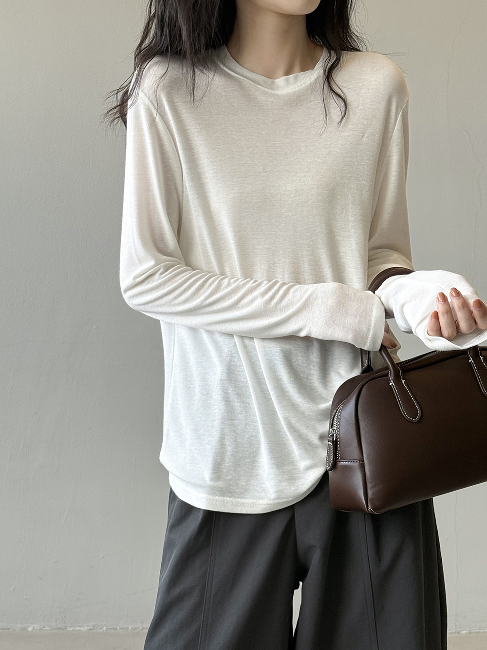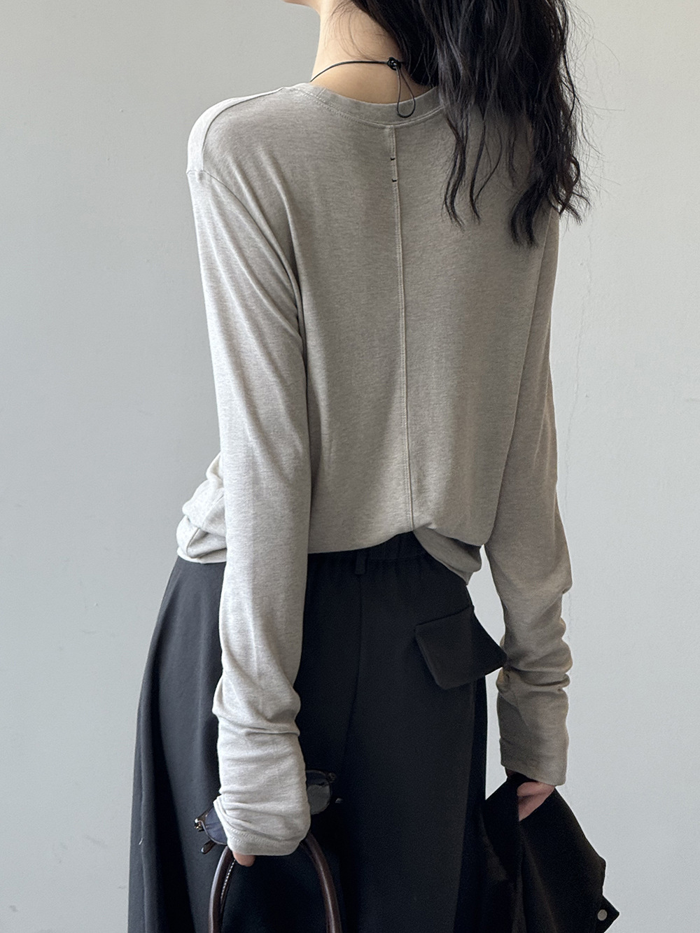 Solid Color Tencel Wool Long-sleeved T-shirt