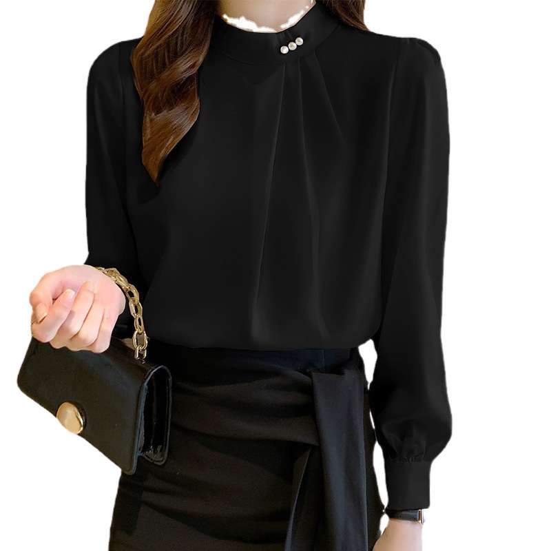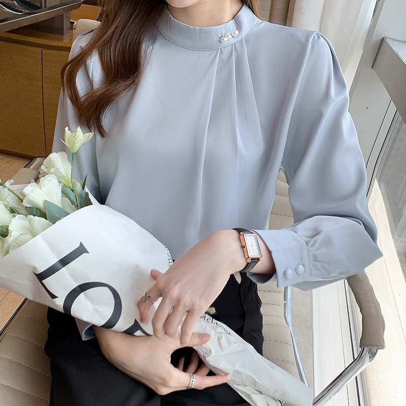 Japanese And Korean Fashion Satin Shirt Women's Long Sleeve Stylish Beaded Base Shirt Spring And Autumn Design Sense Shirt