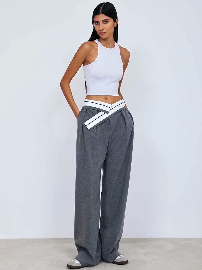 Niche Design Sense Pants Casual Pants Autumn And Winter All-match Wide-leg Pants Stitching Contrast Color Pants Street Women