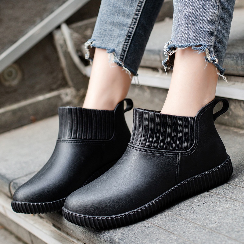 Japanese Rain Shoes Women's Low-top Waterproof Shoes Fleece-lined One-piece Non-slip Sole Working Rubber Shoes Fashionable Rain Shoes