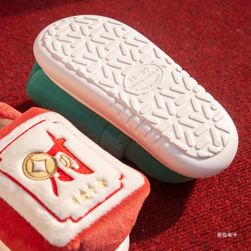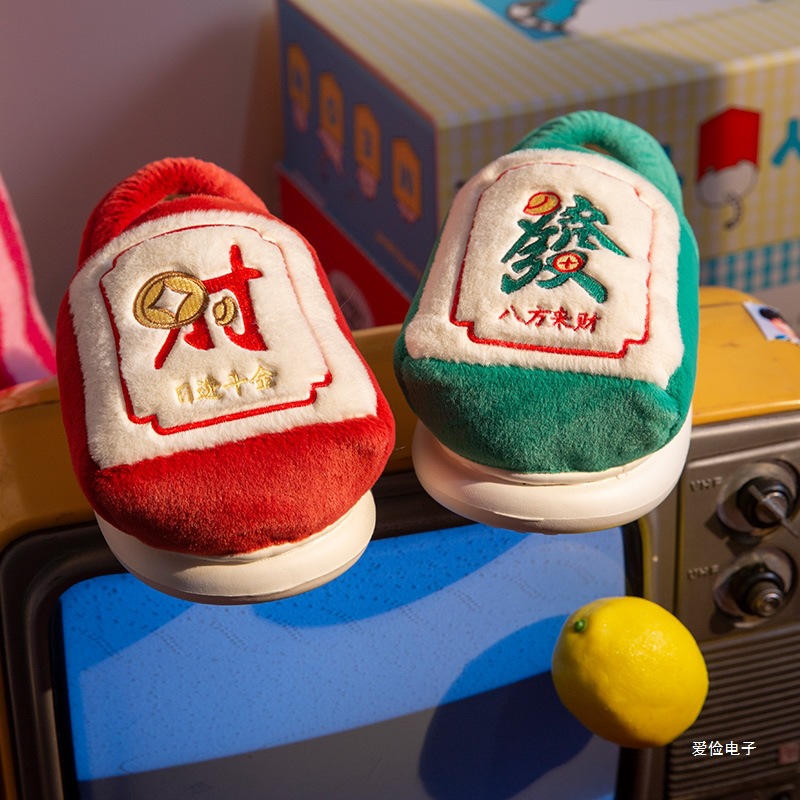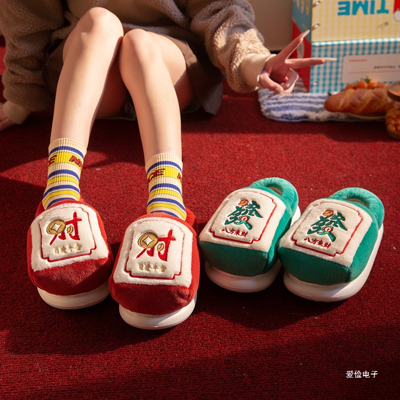 麻将棉拖鞋恭喜发财棉鞋包跟保暖寓意好防滑棉鞋保暖居家打麻将