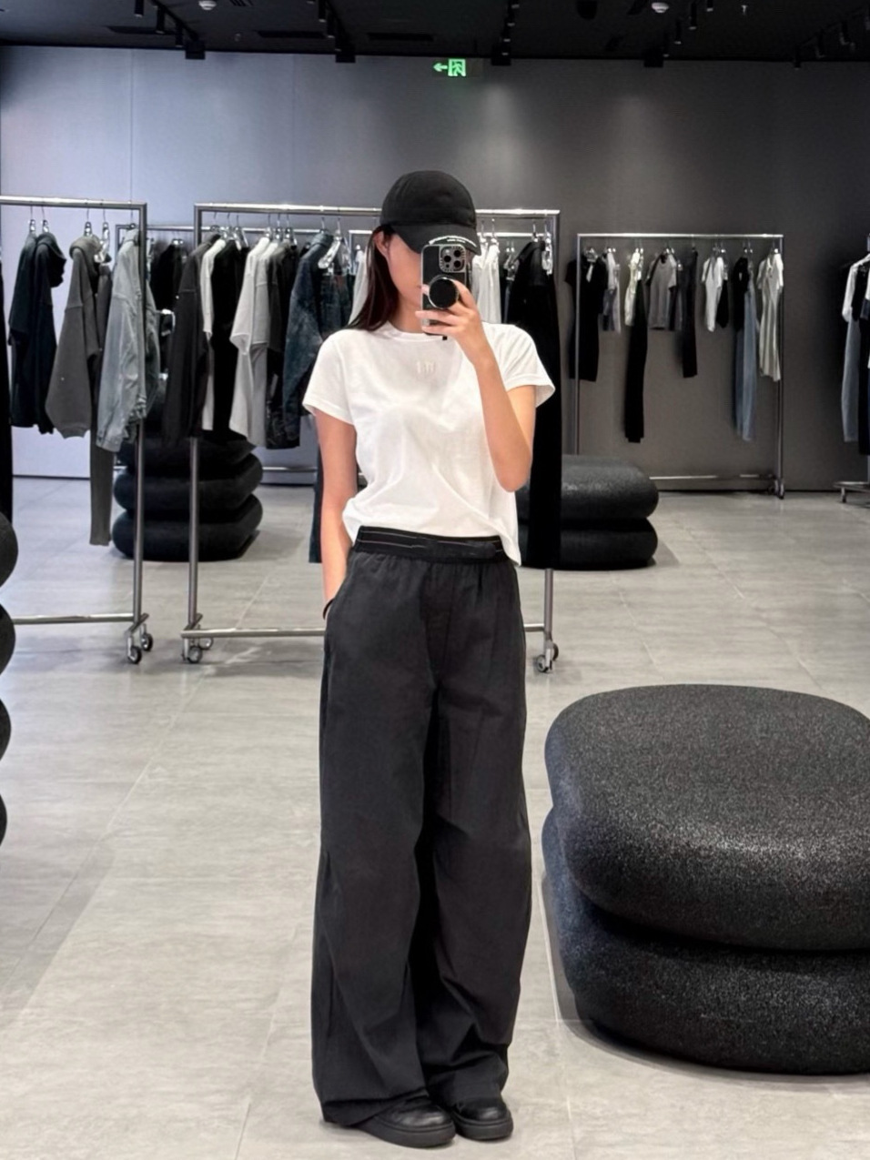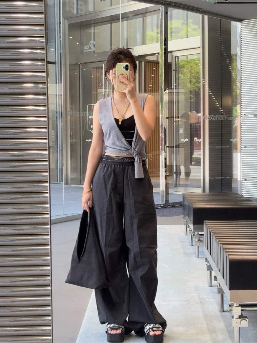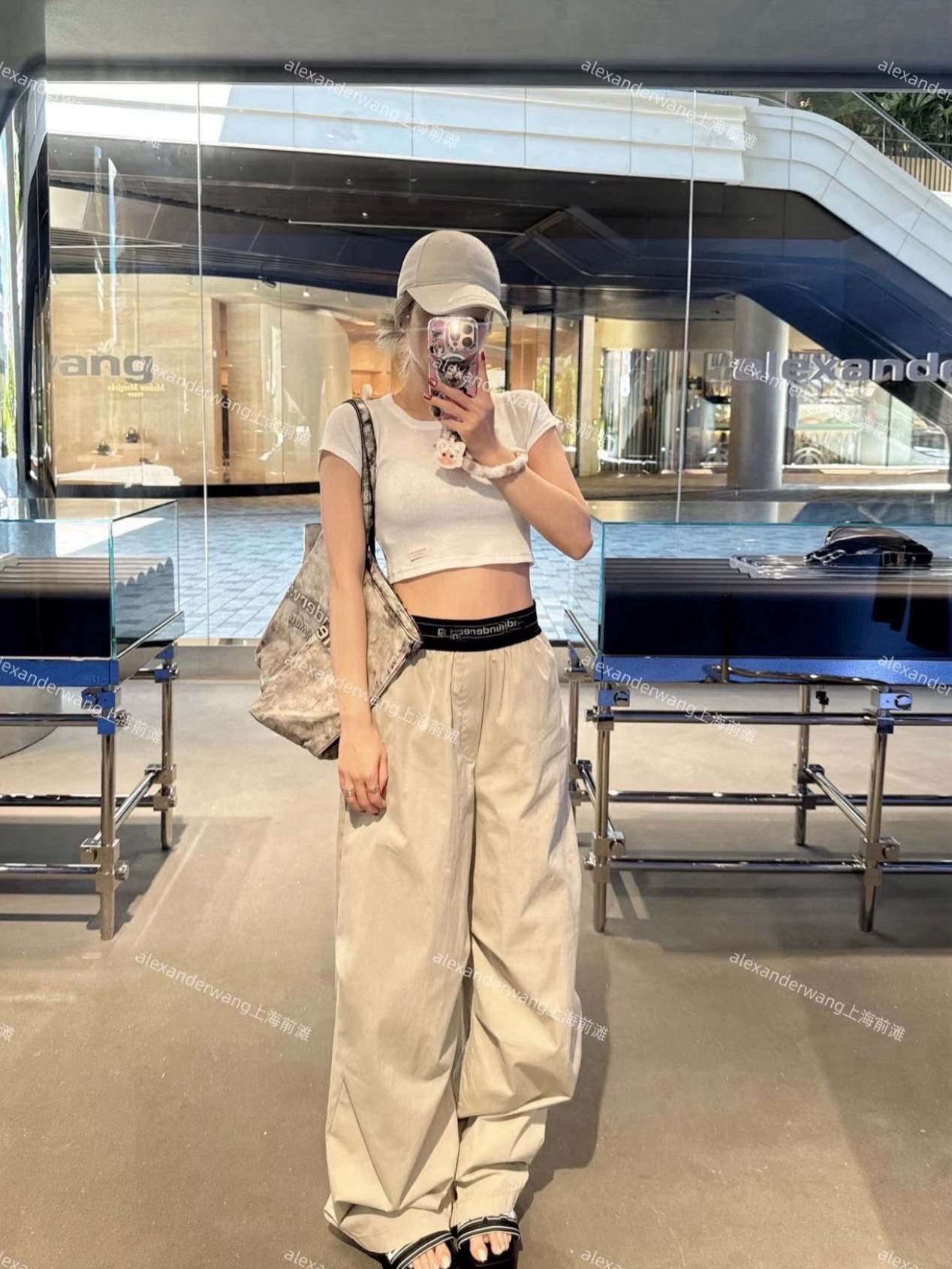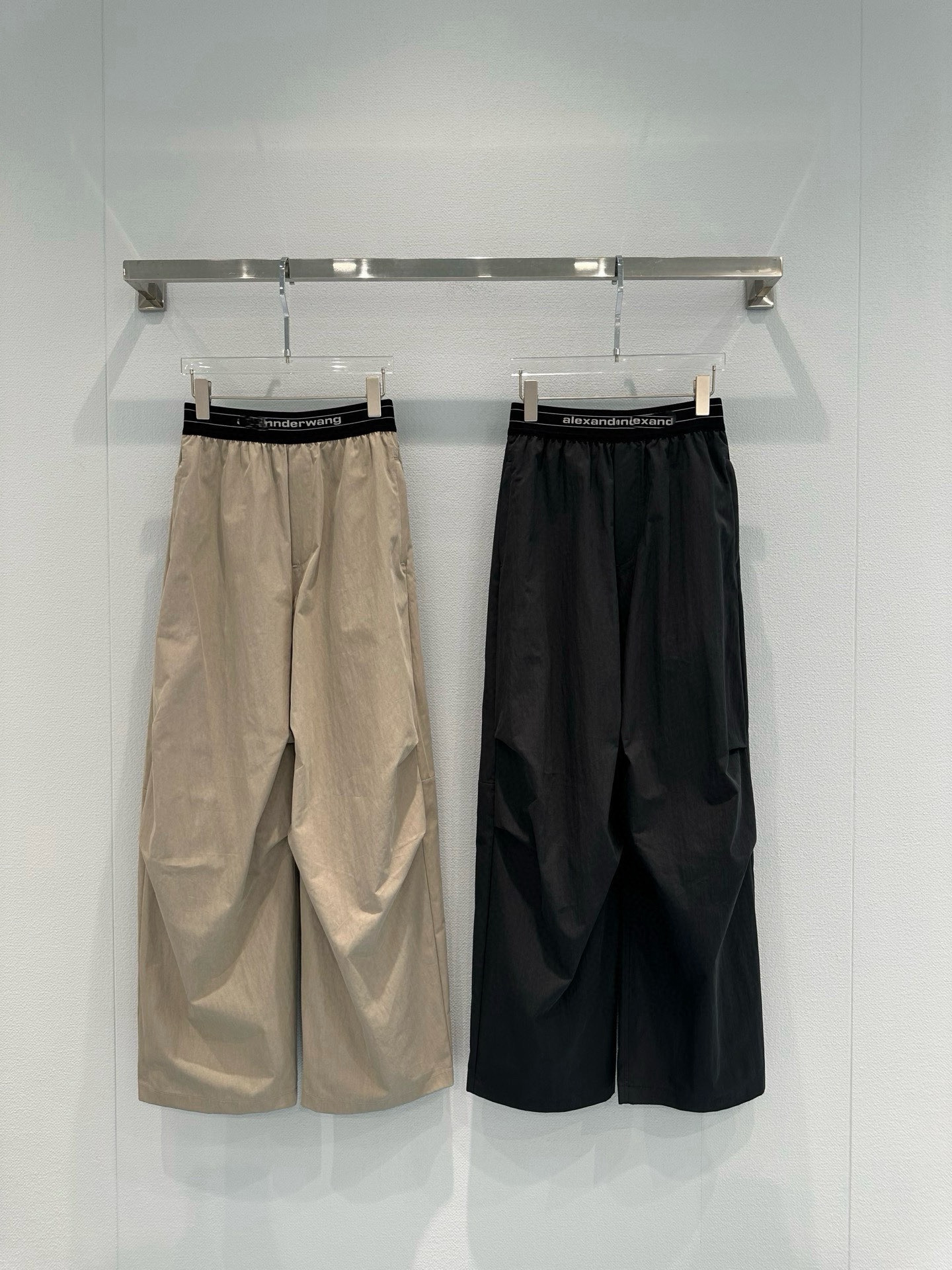 American-style Lettered Webbing Elastic Waist Wide-leg Trousers With Pleats, Cargo Casual Pants