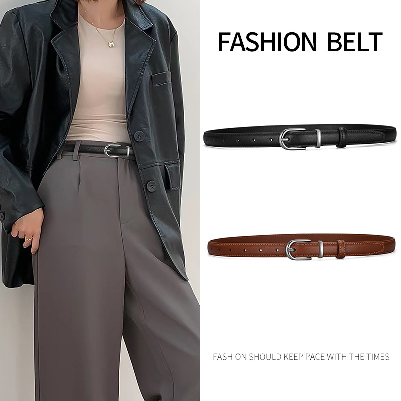 Thin Waist Belt With Pin Buckle, High-end Feel, Pure Cowhide, Versatile And Simple Style, Denim Suit Skirt Belt