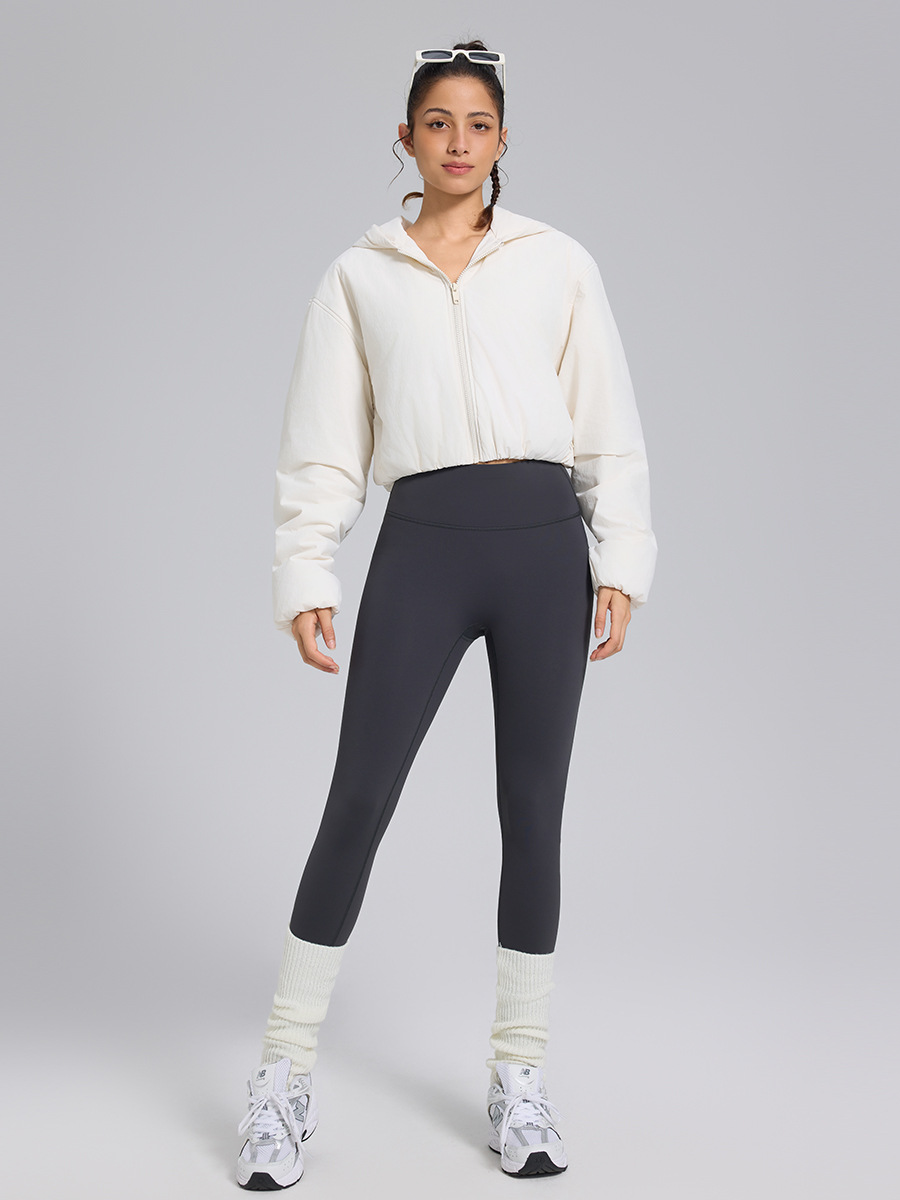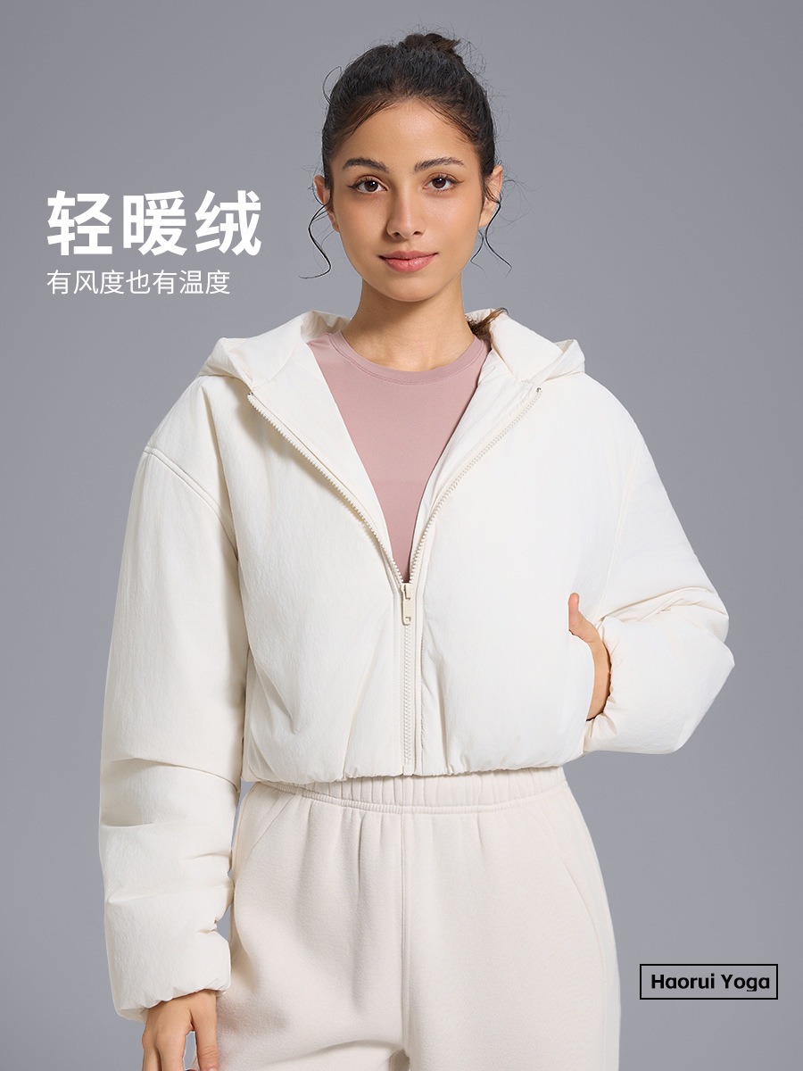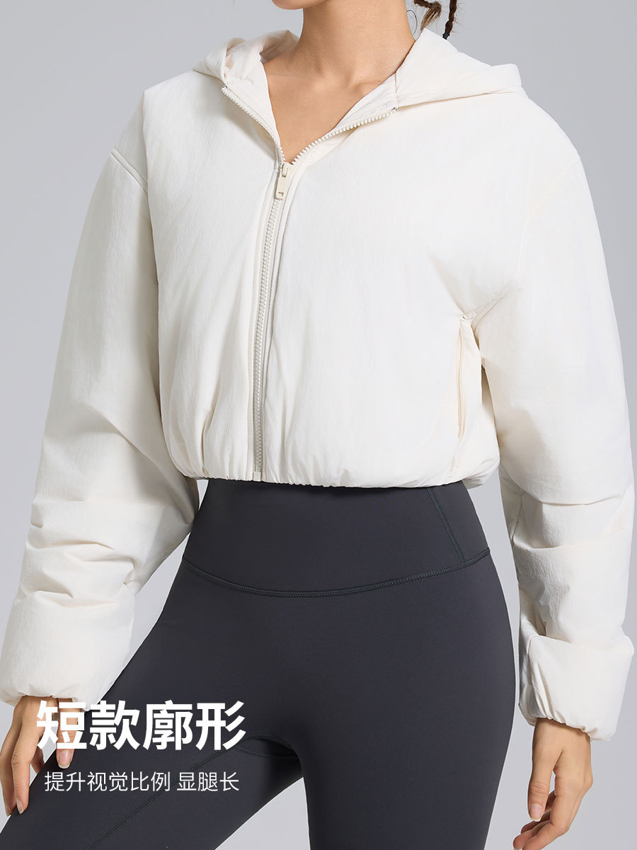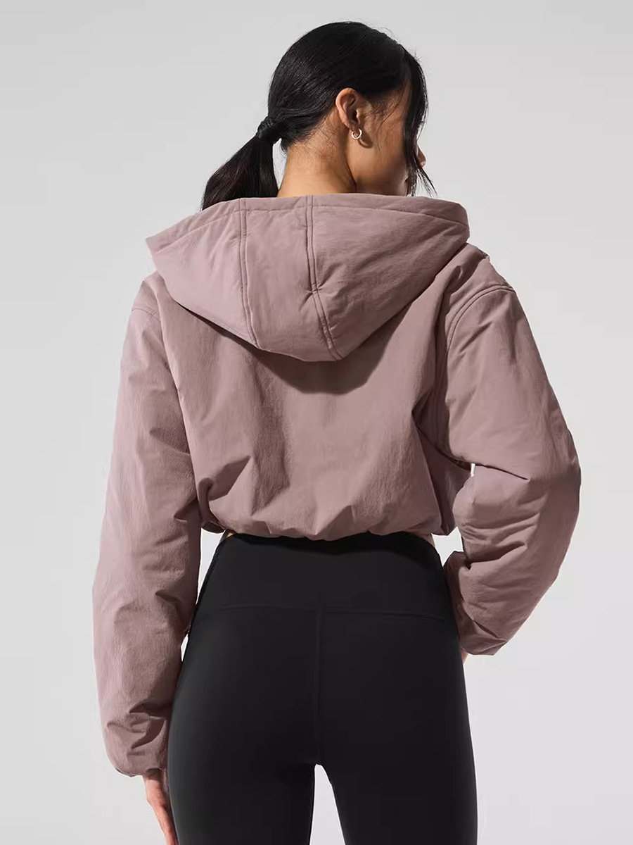 Alo休闲百搭减龄短款连帽棉服女秋宽松加绒夹棉运动外套上衣